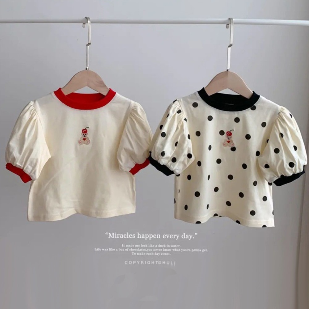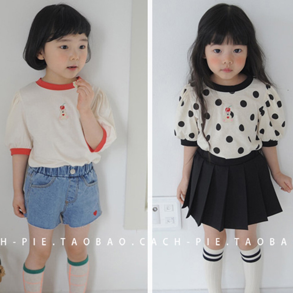 Футболка с короткими рукавами для маленьких девочек 2023 Летние Детские футболки Рубашки с мультяшным принтом для малышей Детская одежда в Корейском стиле