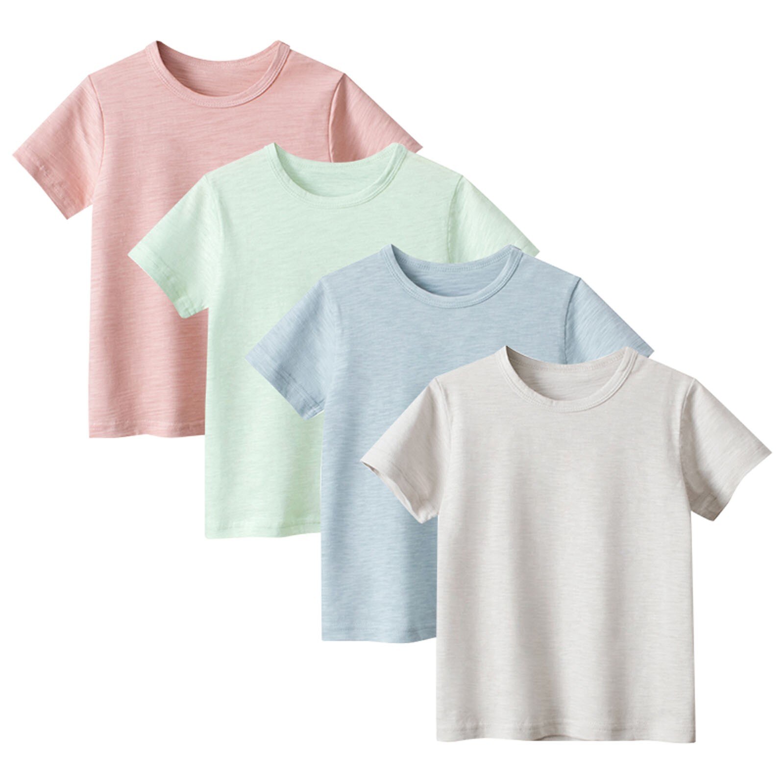Футболка с круглым вырезом для мальчиков с коротким рукавом без бирки Хлопковые футболки (разные цвета, Мультипаки) Базовая многослойная футболка