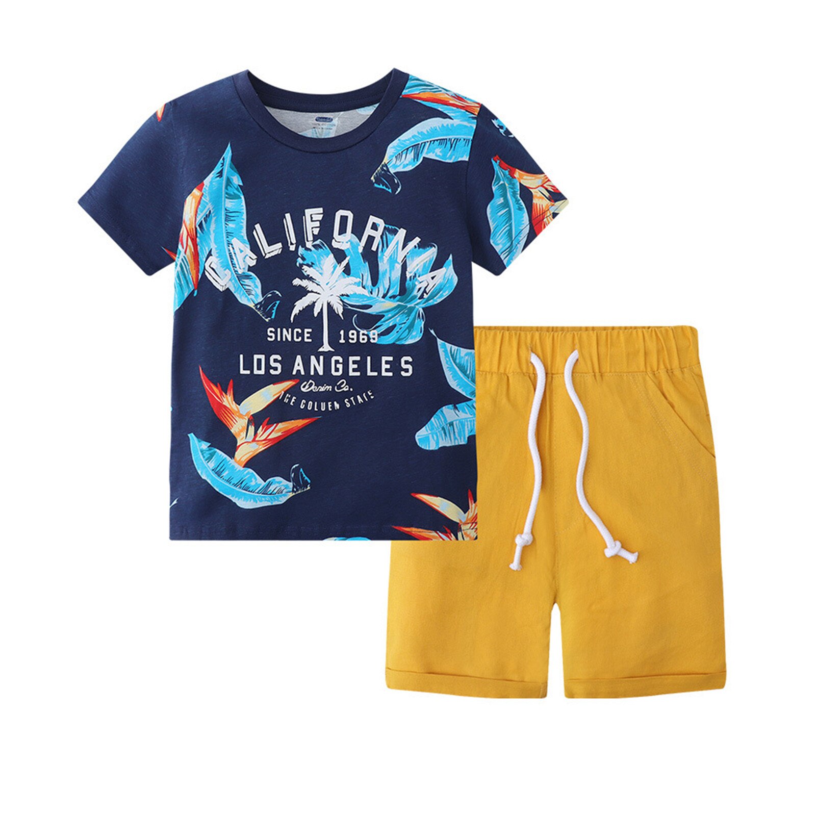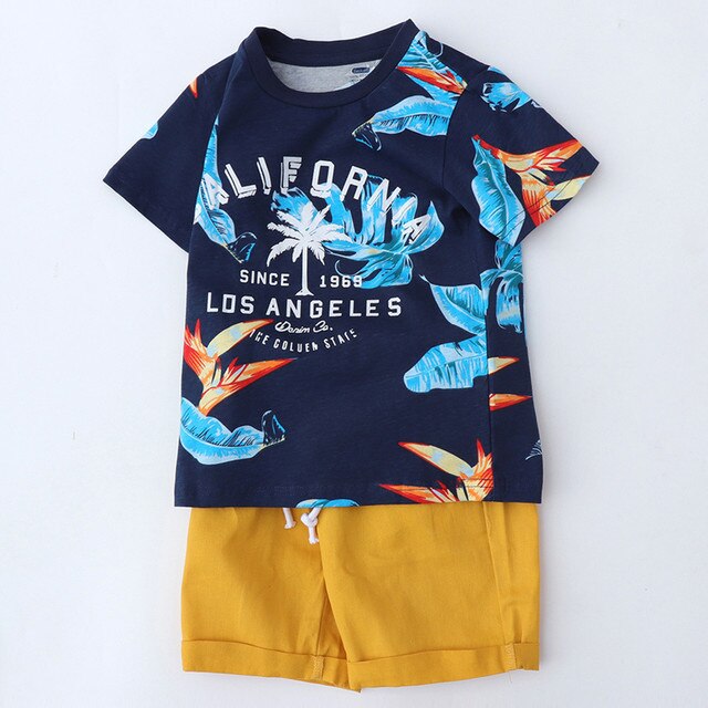 Малыши Мальчики с короткими рукавами и мультяшным принтом Футболки Топы Шорты Детские наряды джентльмена