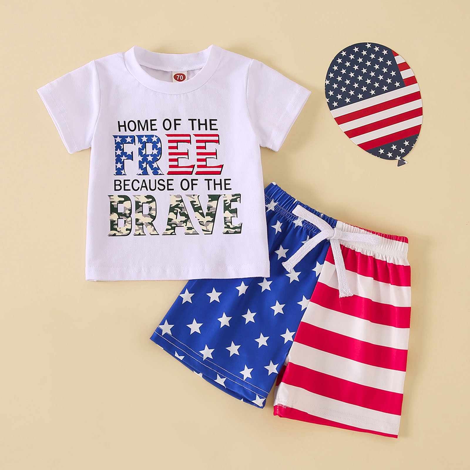 Малыш Мальчики День независимости 4 июля с коротким рукавом с буквенным принтом Футболка Топы Шорты Наряды