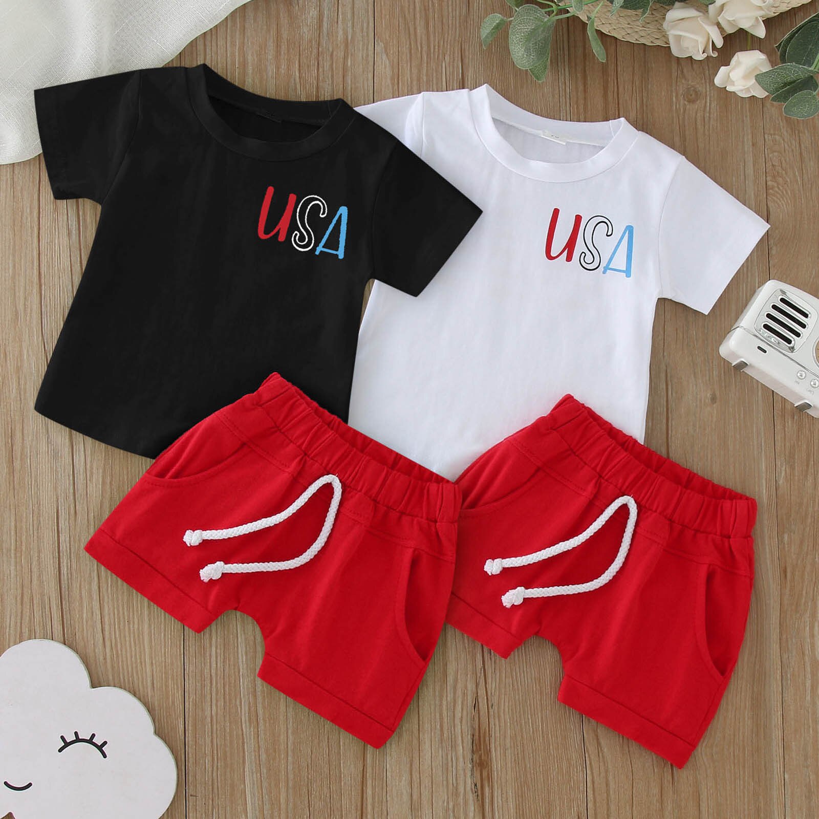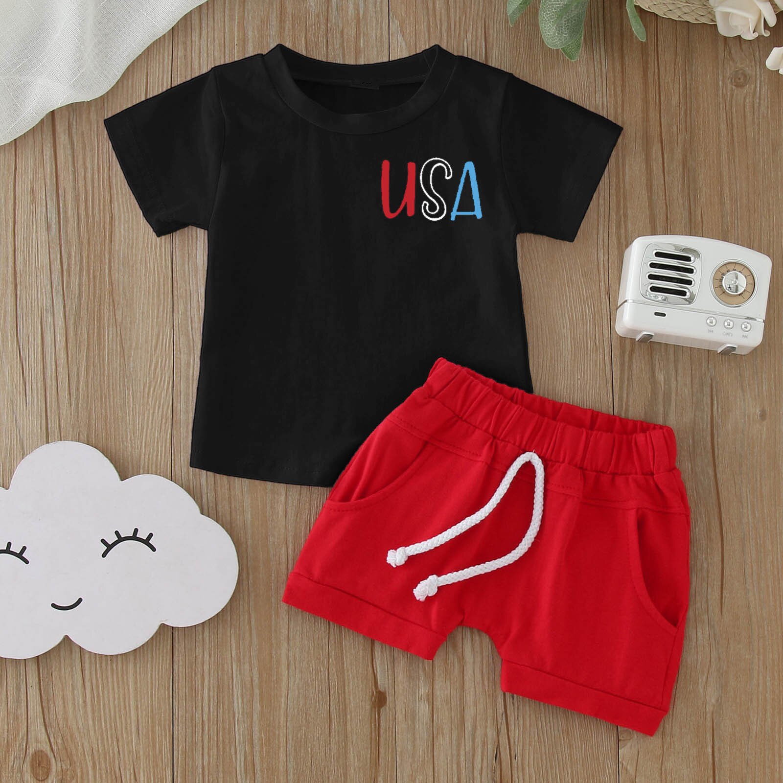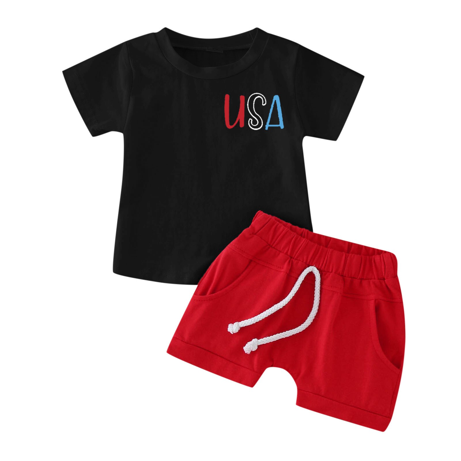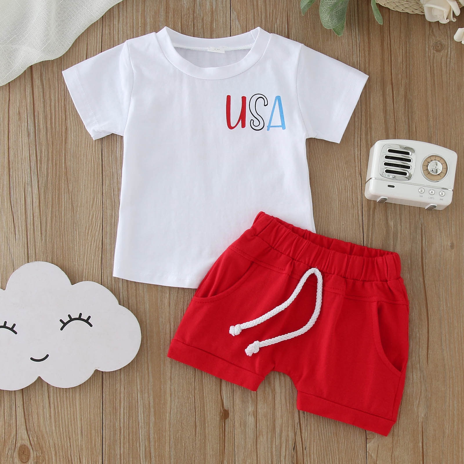Малыш Мальчики День независимости 4 июля с коротким рукавом с буквенным принтом Футболка Топы Шорты Наряды
