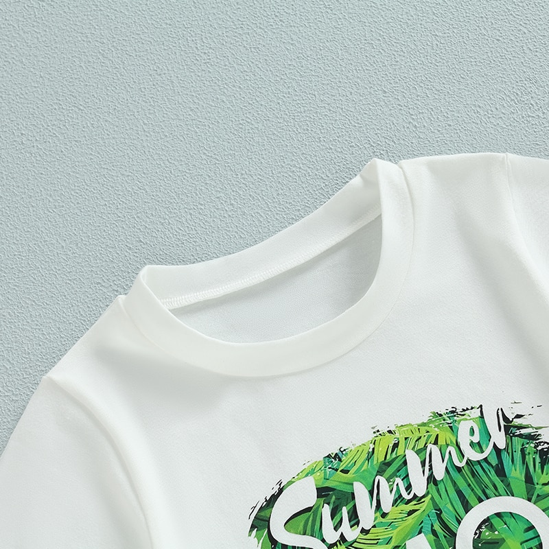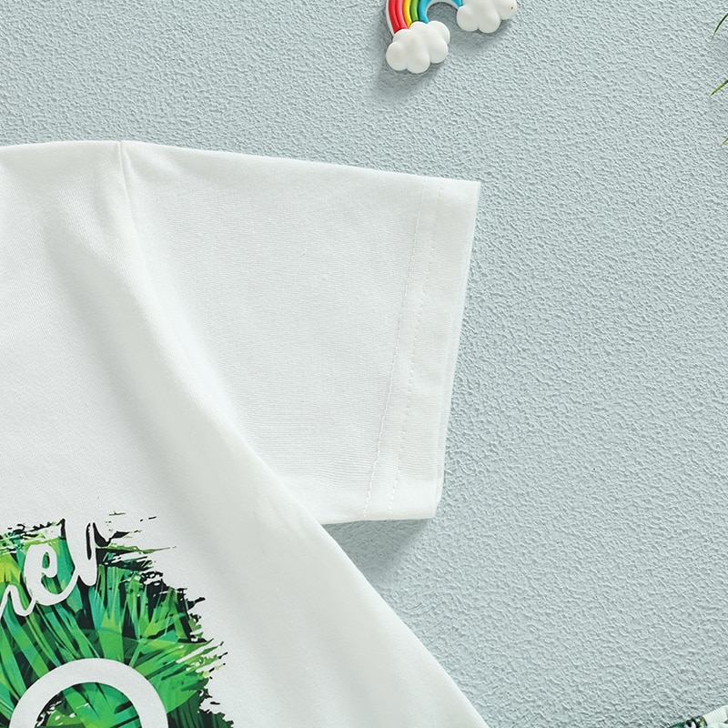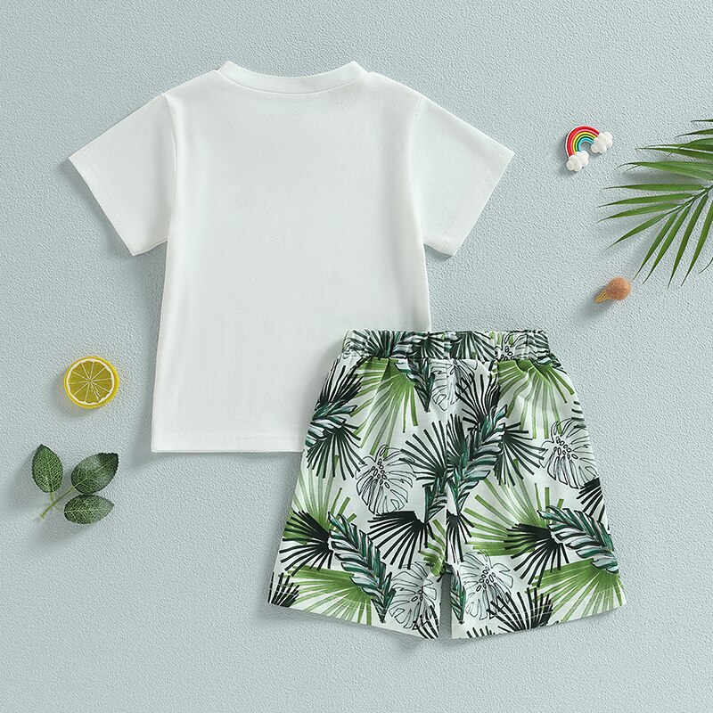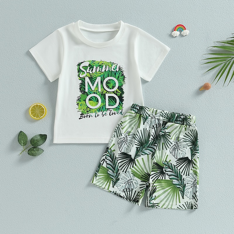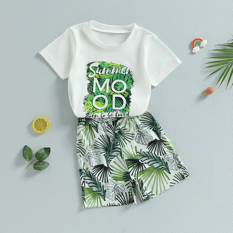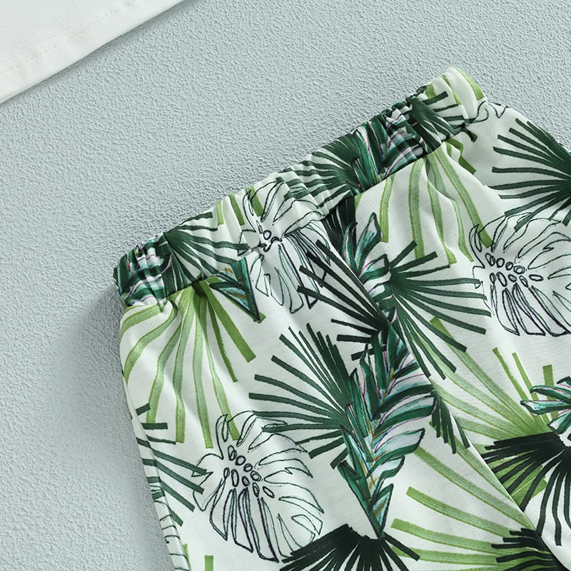 Описание: Детские летние наряды для маленьких мальчиков, футболка с коротким рукавом и принтом листьев, повседневный эластичный комплект шорт