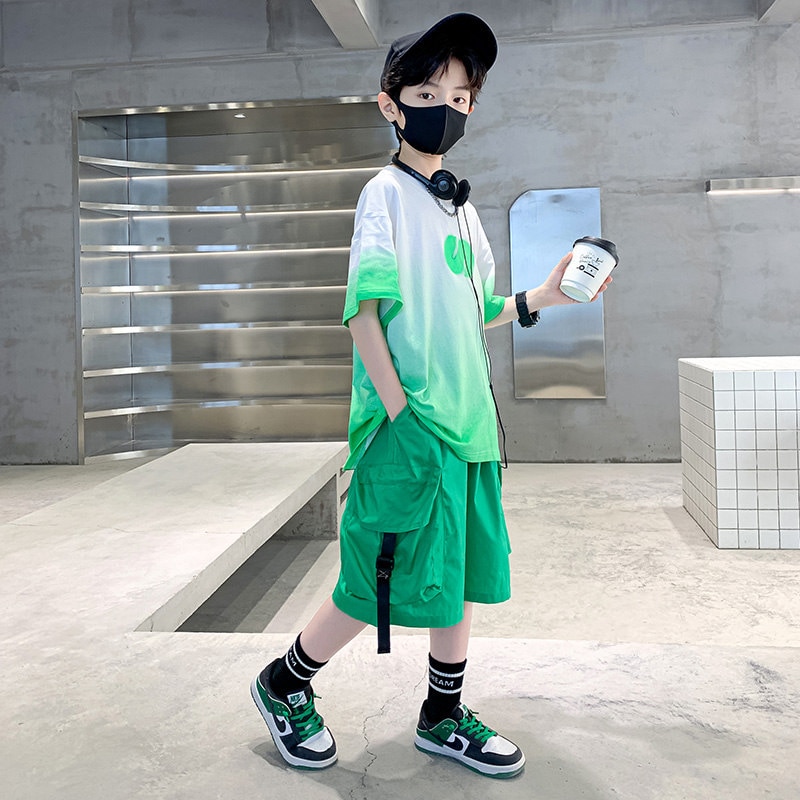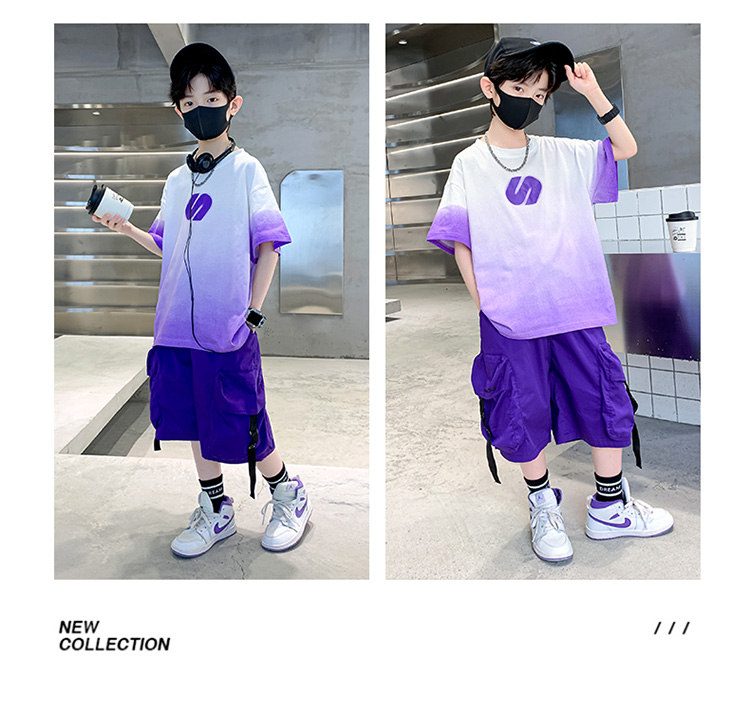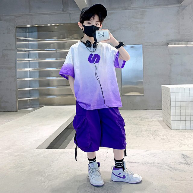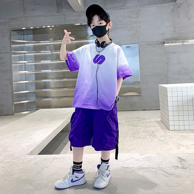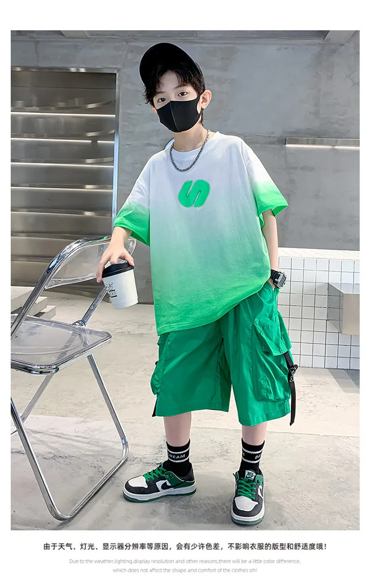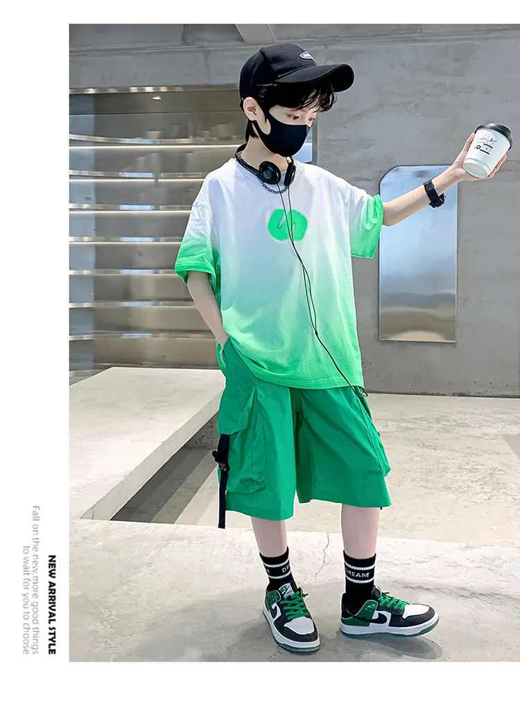 Летняя одежда для больших мальчиков, детские футболки фиолетового зеленого цвета с короткими рукавами, топы + шорты, костюм, хлопковые наряды для подростков, 5 7 9 11 13 14 лет