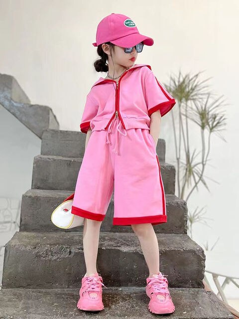 Комплекты одежды для девочек-подростков Летние повседневные футболки с короткими рукавами + брюки Модные костюмы из 2 предметов для детской одежды 8 10 12 14 лет
