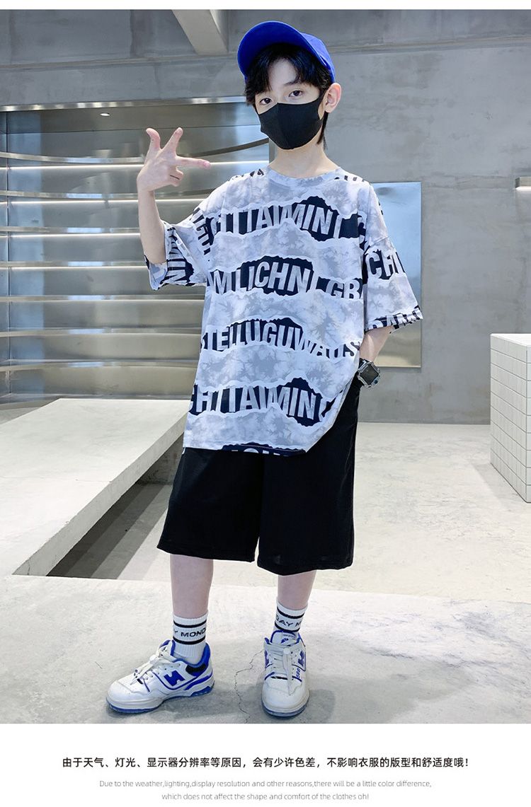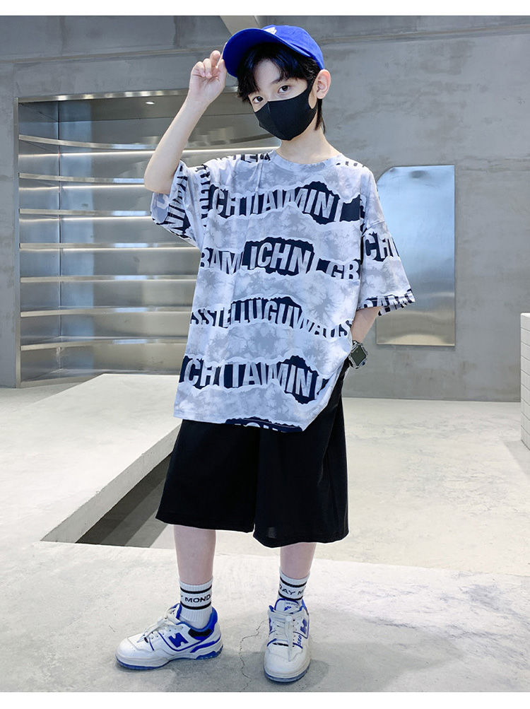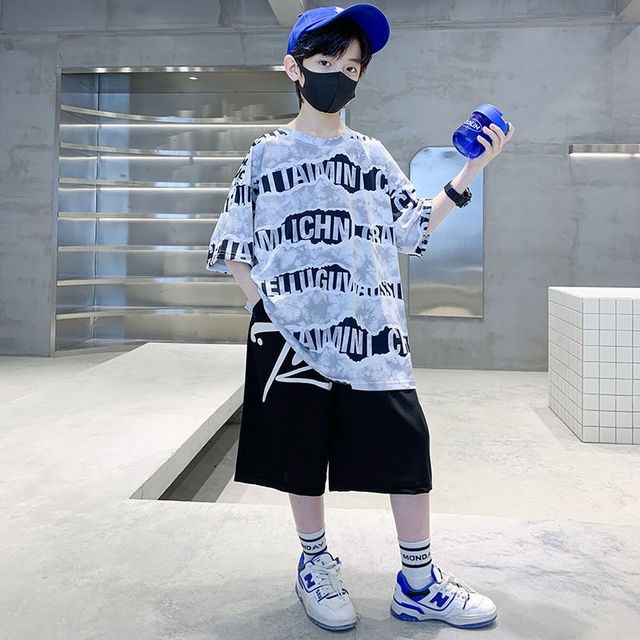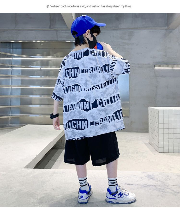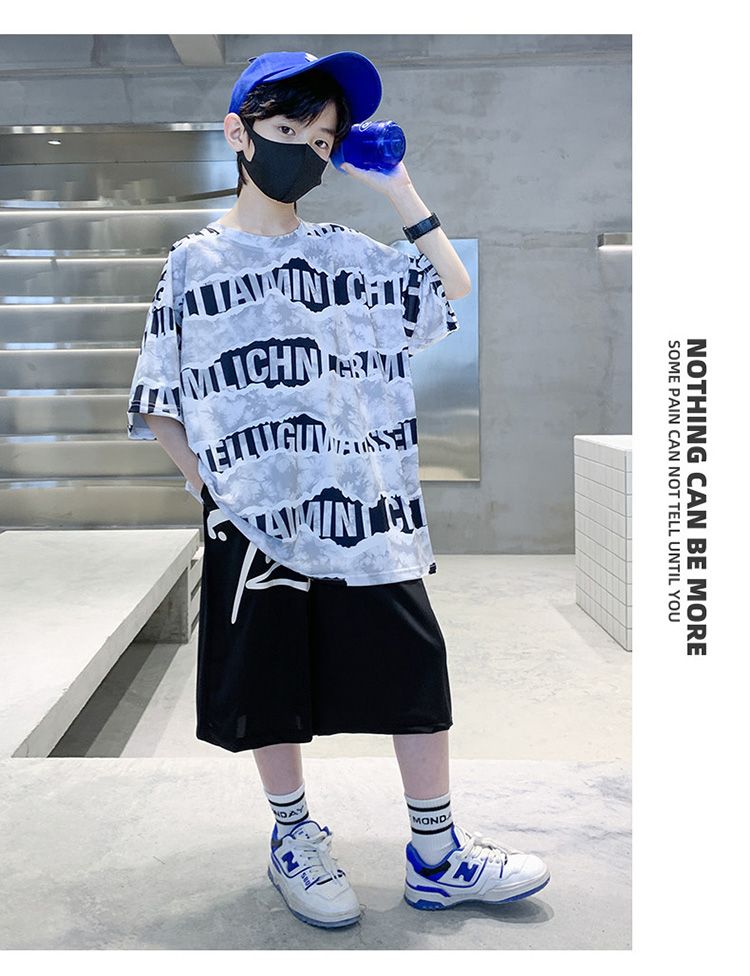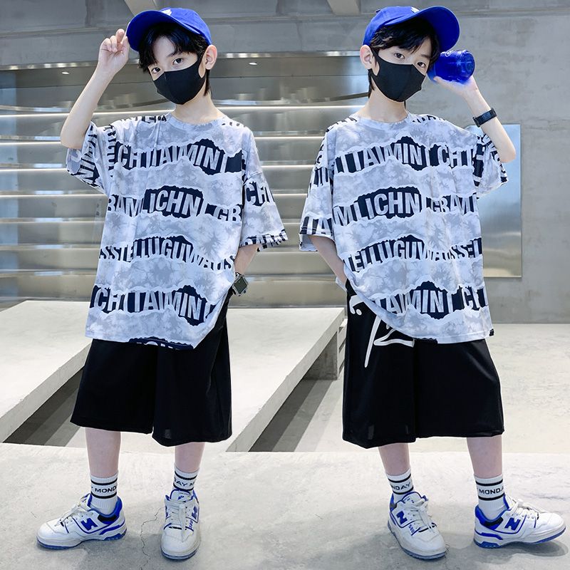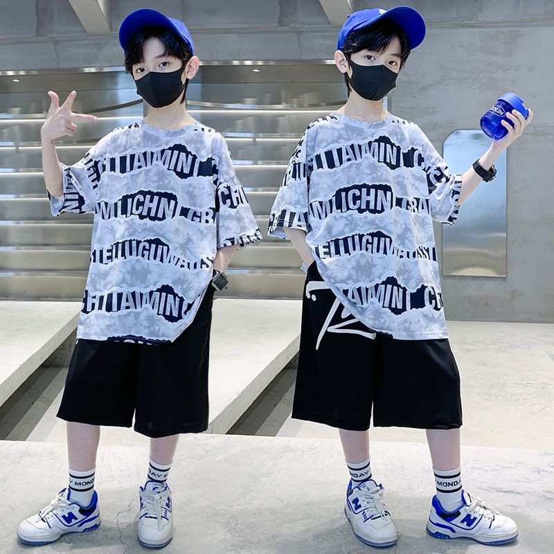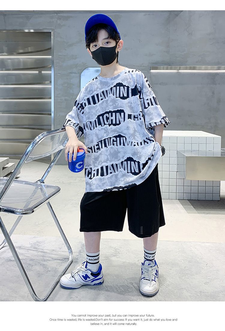 2023 Детский летний костюм для мальчиков Одежда Футболка с короткими рукавами и буквами + брюки Комплект из 2 предметов Детская одежда Одежда 6 8 9 10 12 лет