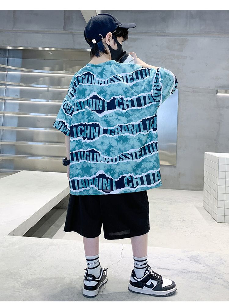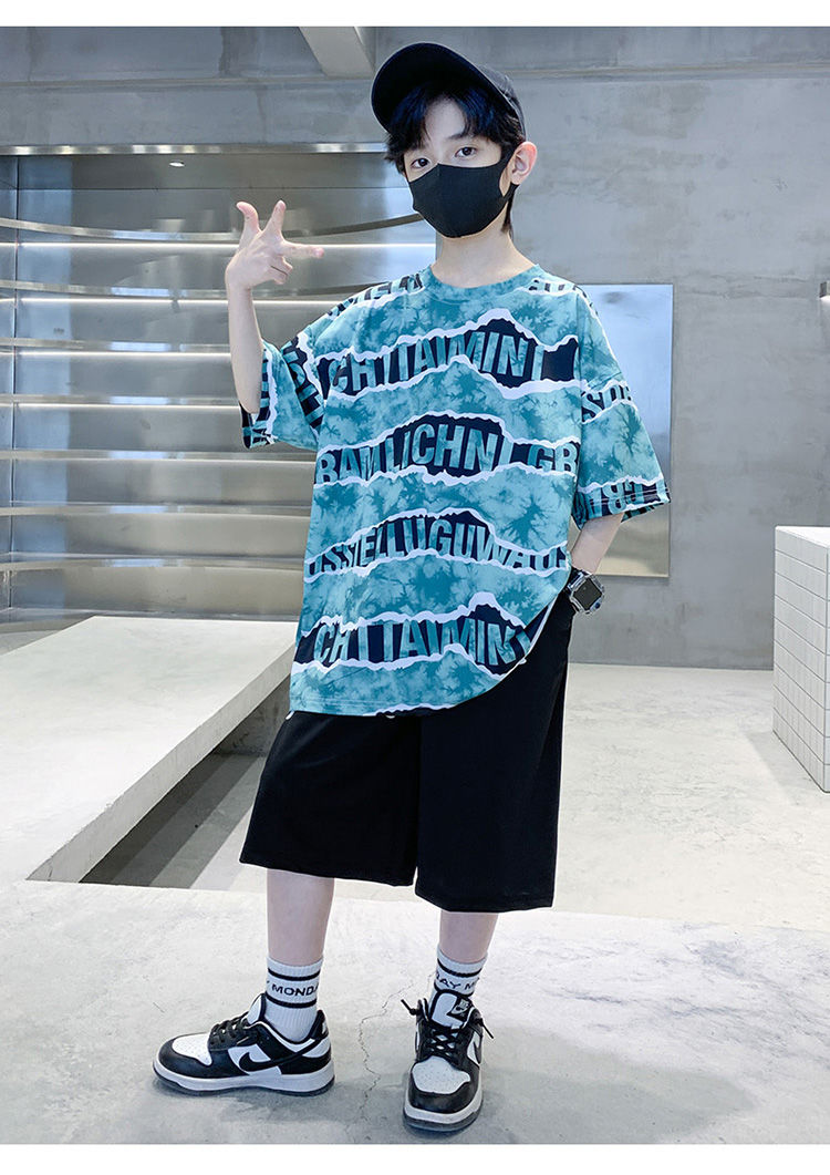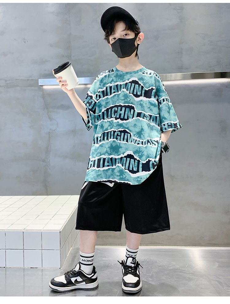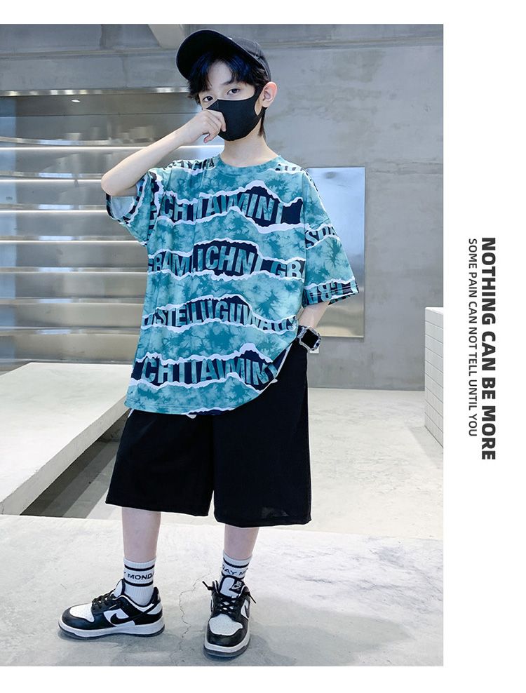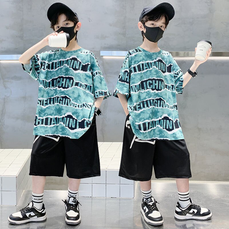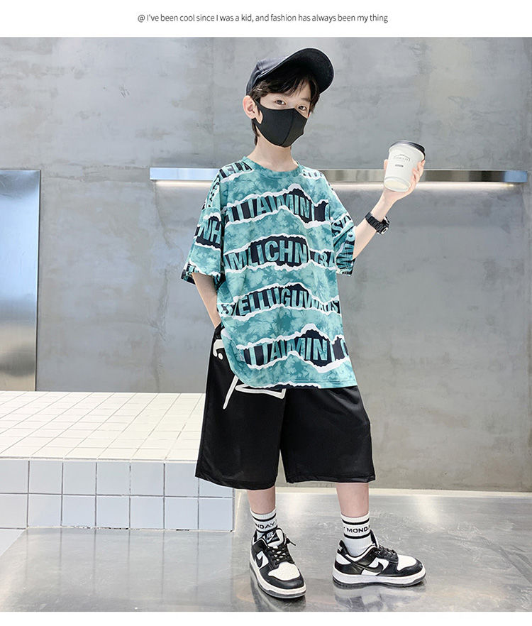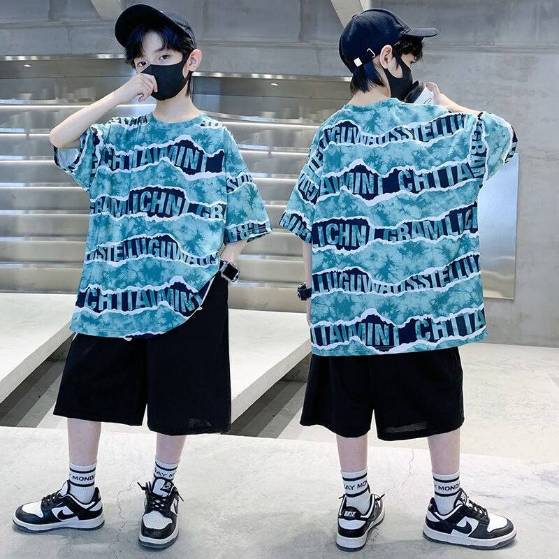 2023 Детский летний костюм для мальчиков Одежда Футболка с короткими рукавами и буквами + брюки Комплект из 2 предметов Детская одежда Одежда 6 8 9 10 12 лет