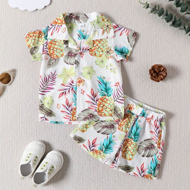 Футболка с короткими рукавами и рисунком принты с ананасом для маленьких мальчиков; Топы и шорты; Детская одежда для маленьких джентльменов; Спортивный костюм для мальчиков; 6