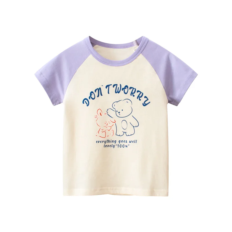 Футболка с мультяшным медведем для девочек, Новинка лета 2023, детский хлопковый топ с коротким рукавом, модные детские футболки с круглым вырезом, наряд для девочек 2-10 лет