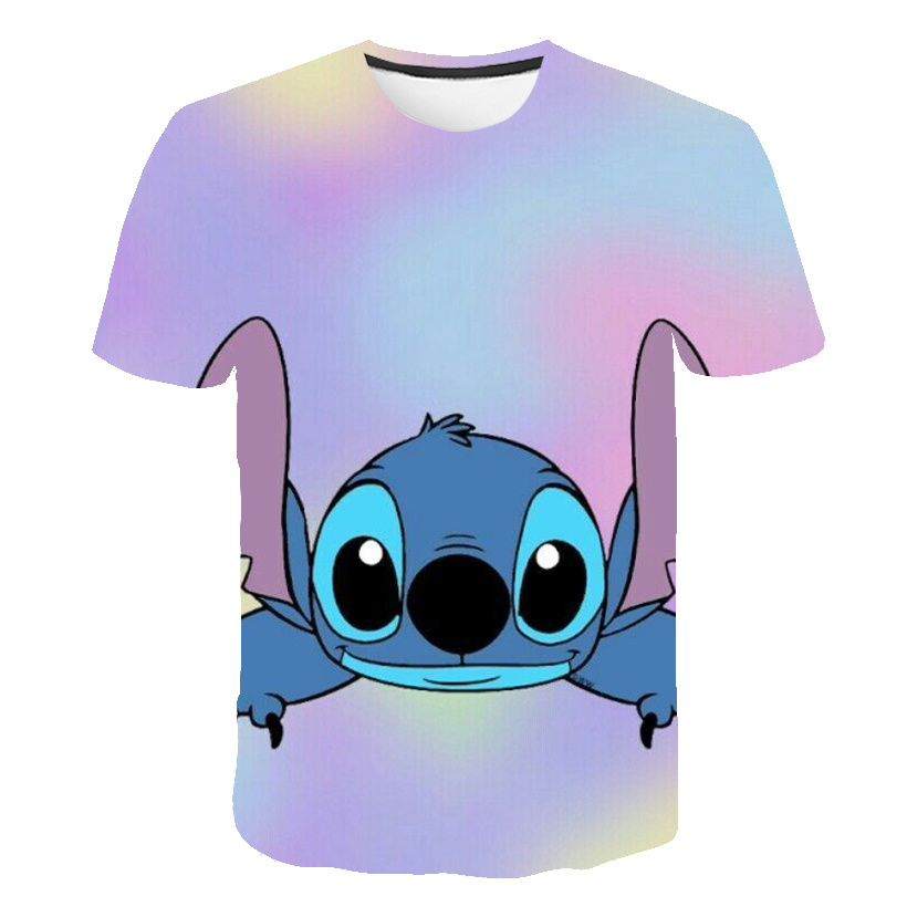 Футболка с мультяшным рисунком для мальчиков и девочек, Модный милый топ с 3D-принтом Диснея, Ститч, на лето