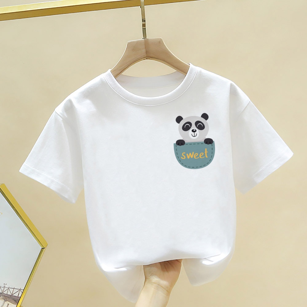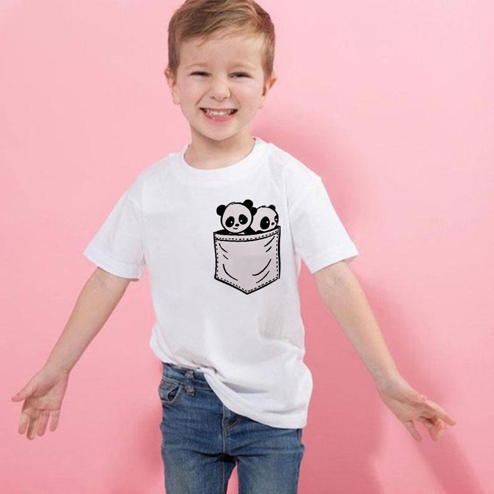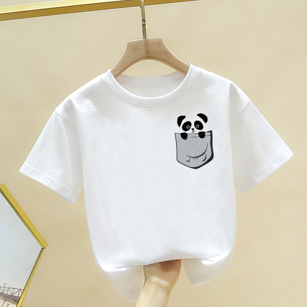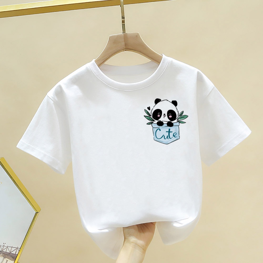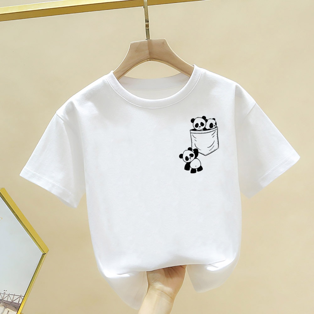 Футболка с принтом милой панды для мальчиков и девочек, летняя футболка с коротким рукавом, топы, Детская Повседневная футболка, кавайная детская одежда, одежда