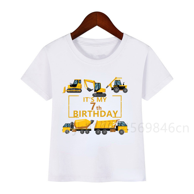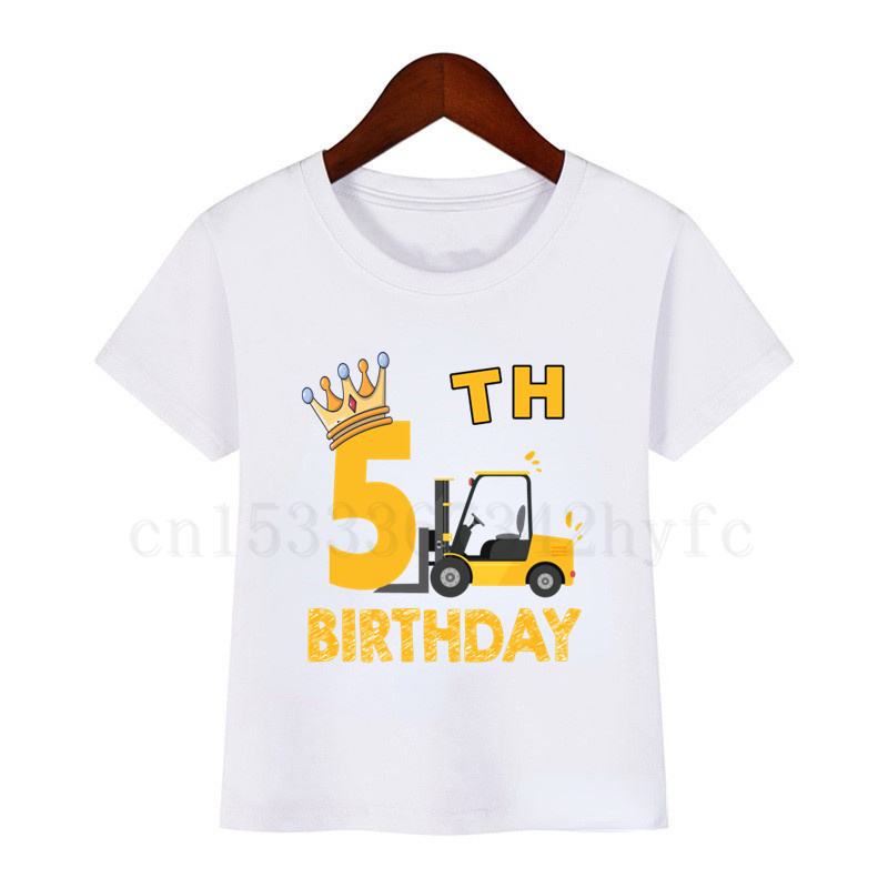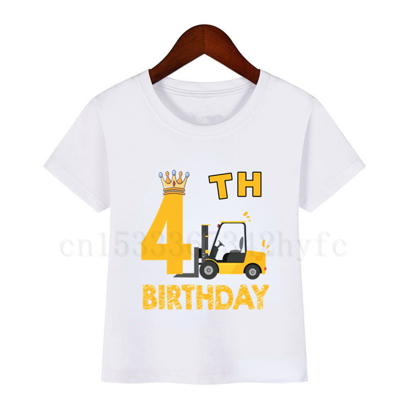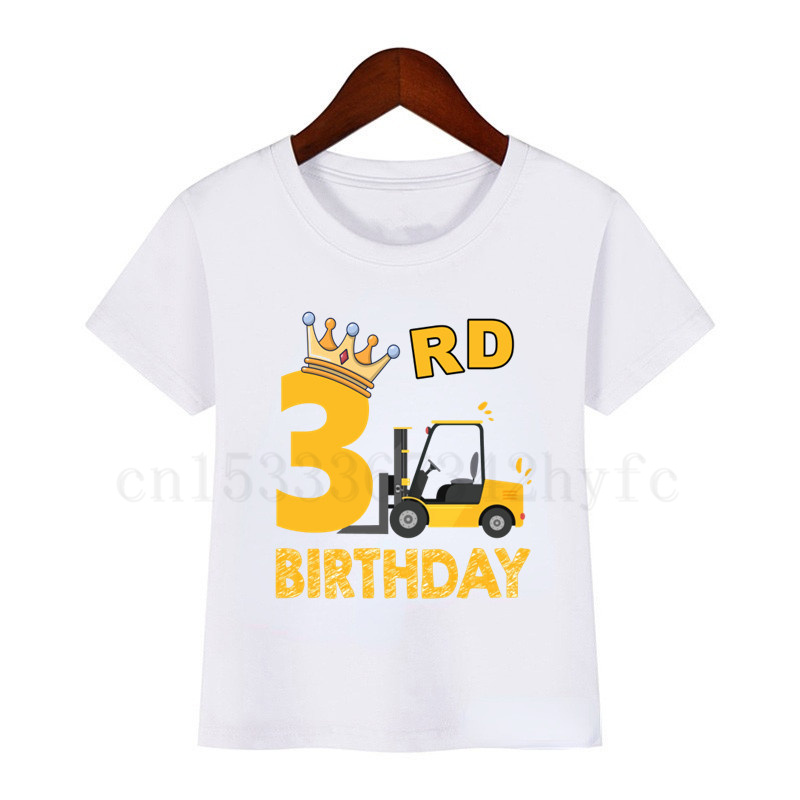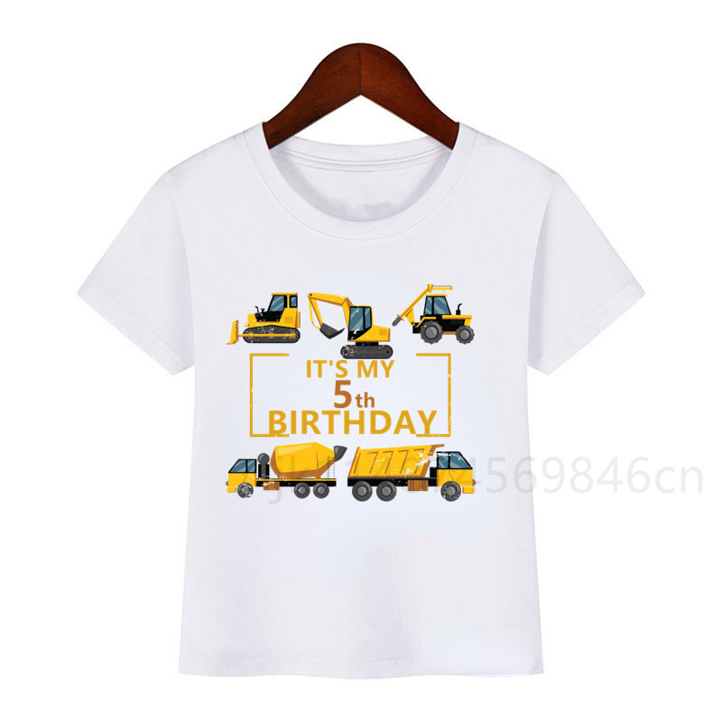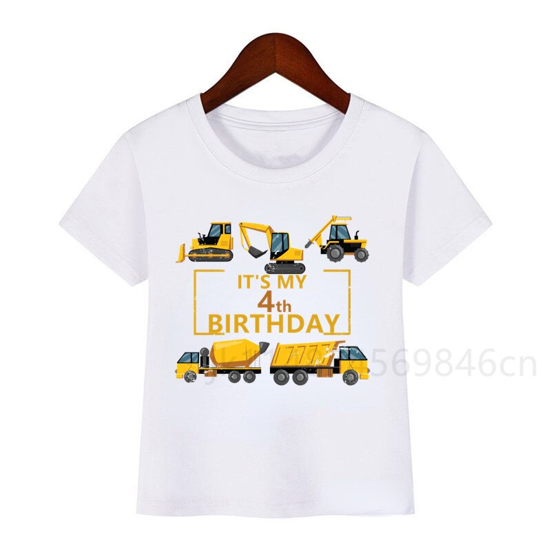 Футболка с принтом строительных автомобилей для мальчиков, Детская рубашка с цифрами на день рождения, забавный подарок для мальчиков и девочек, Подарочная Одежда для мальчиков