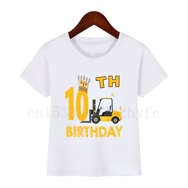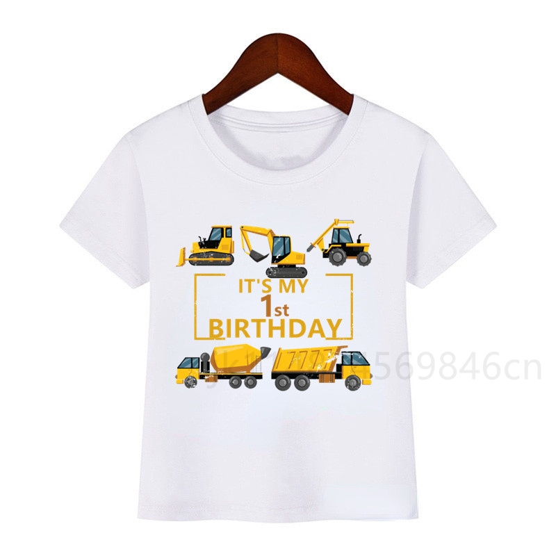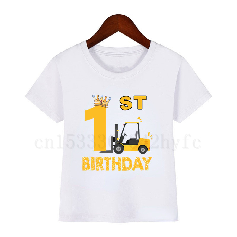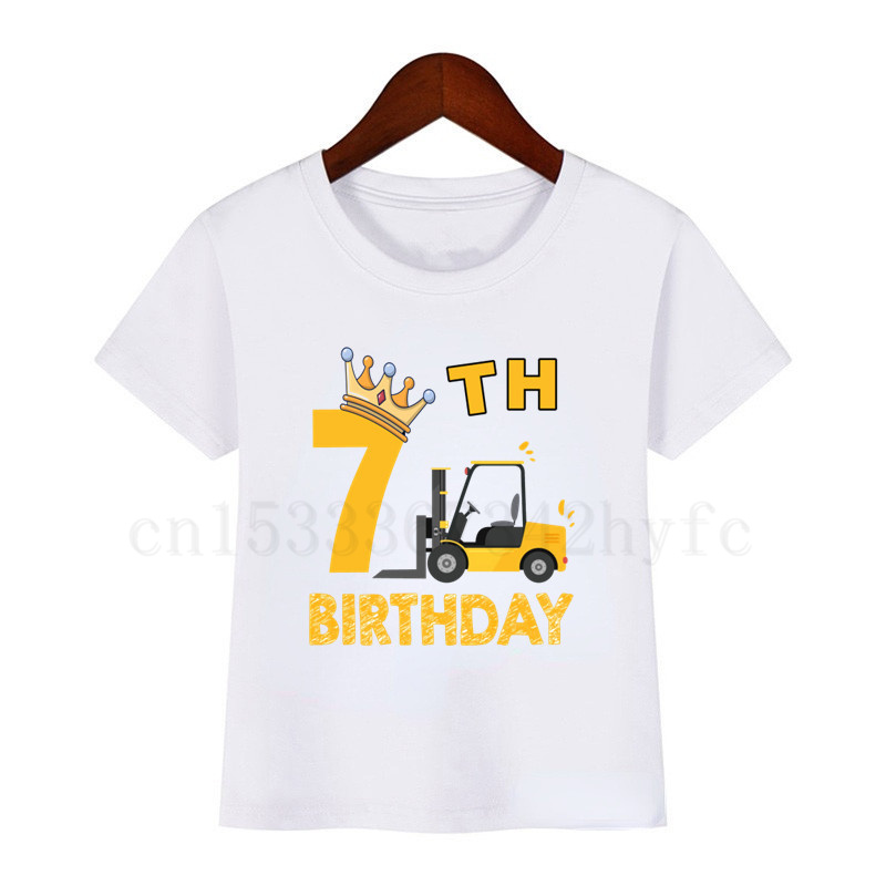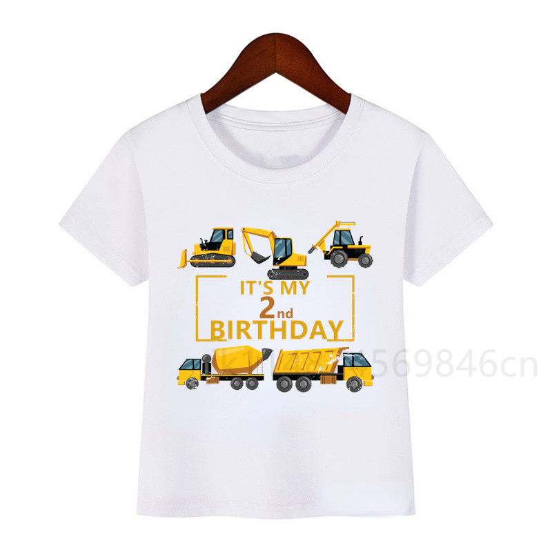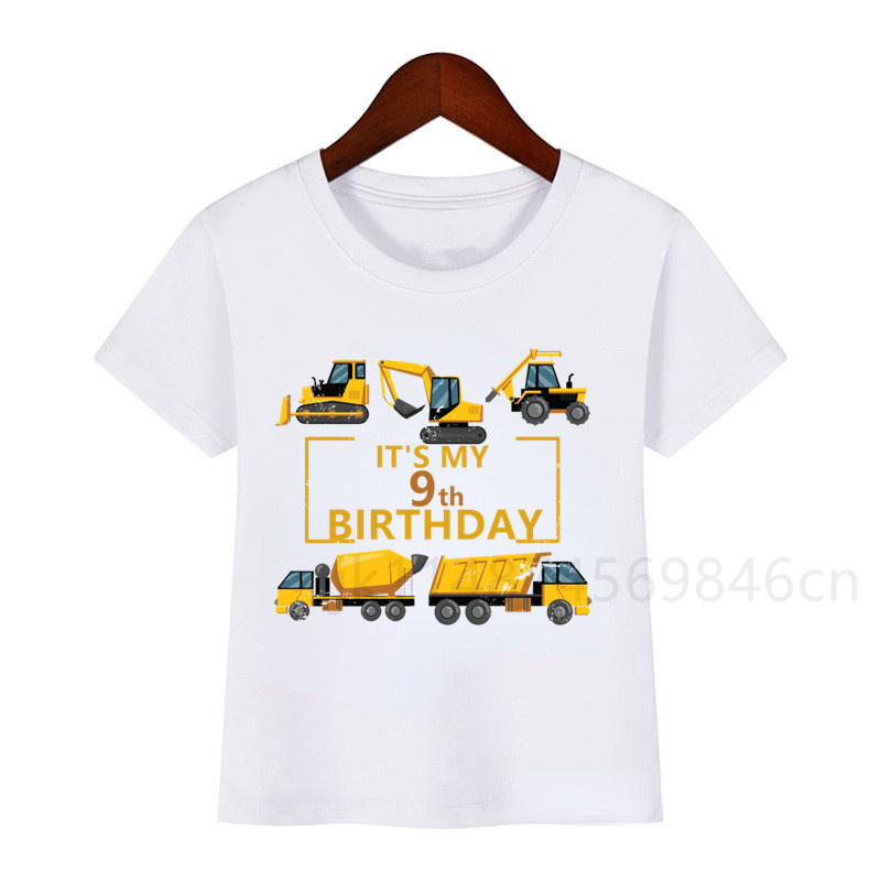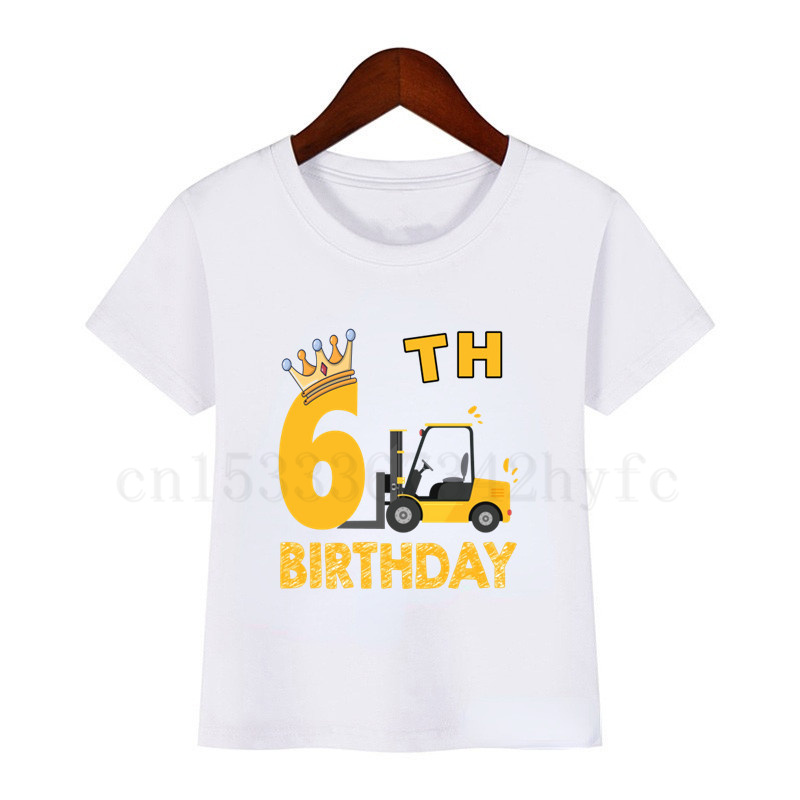 Футболка с принтом строительных автомобилей для мальчиков, Детская рубашка с цифрами на день рождения, забавный подарок для мальчиков и девочек, Подарочная Одежда для мальчиков