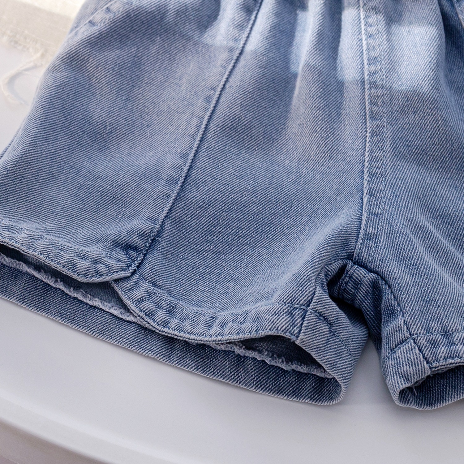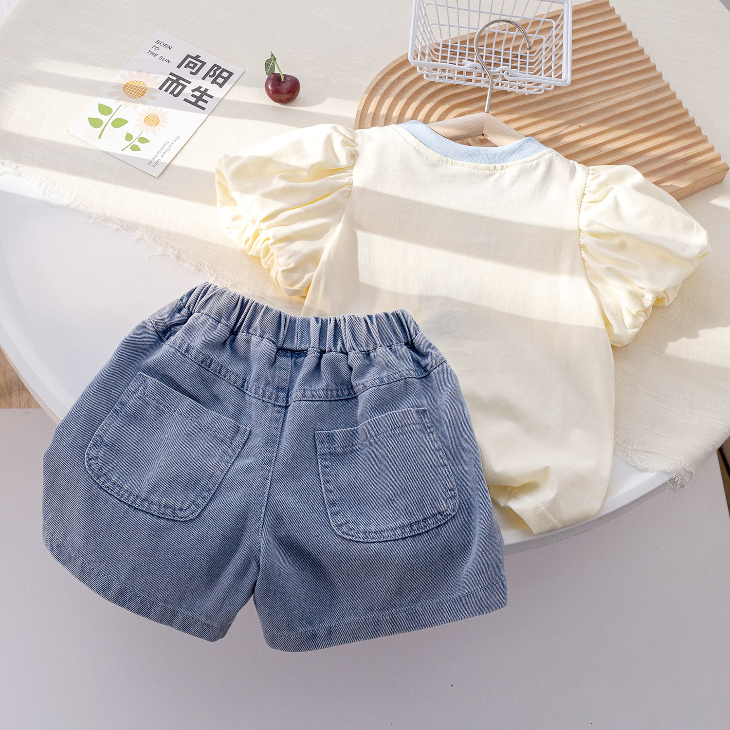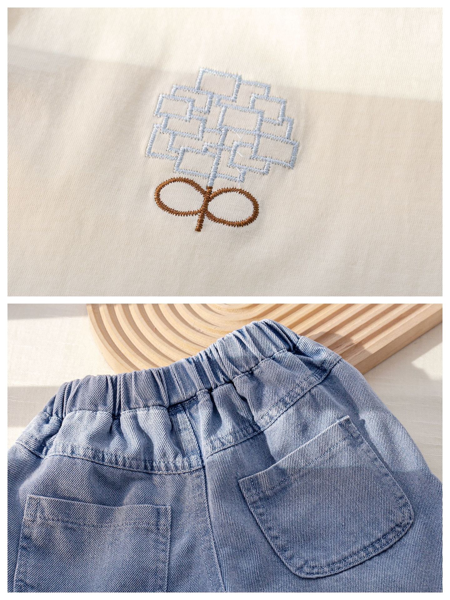 Футболка с вышивкой для девочек-подростков, корейский стиль, летний топ с коротким рукавом и джинсовые шорты, комплект из 2 предметов, одежда для маленьких девочек, 2023