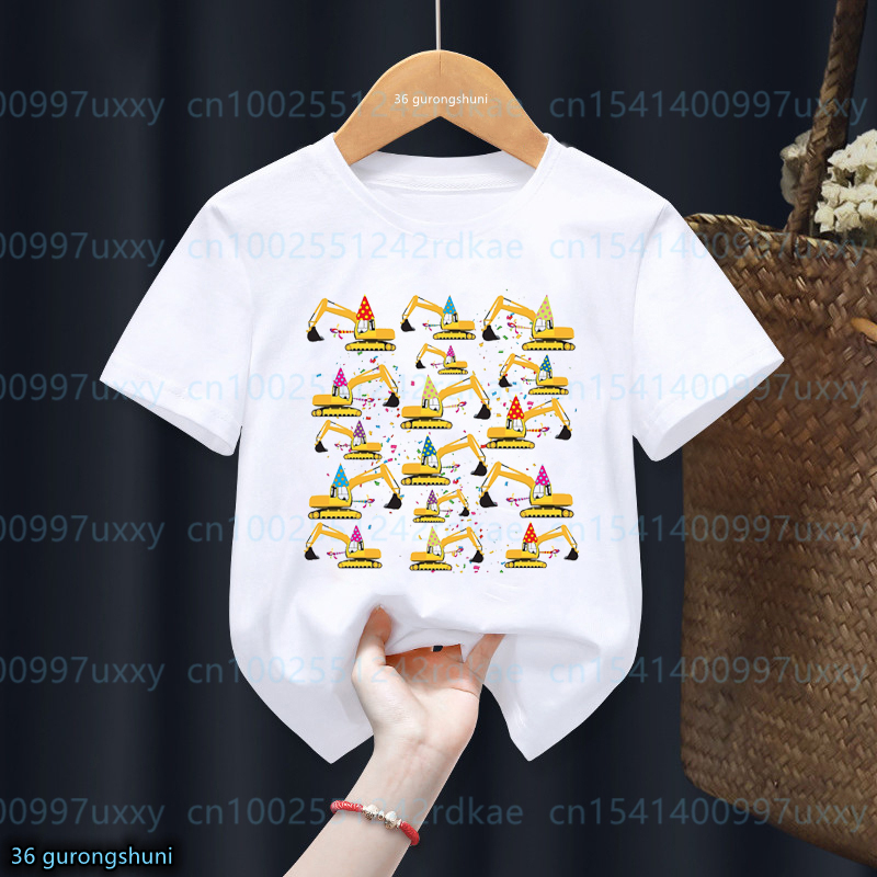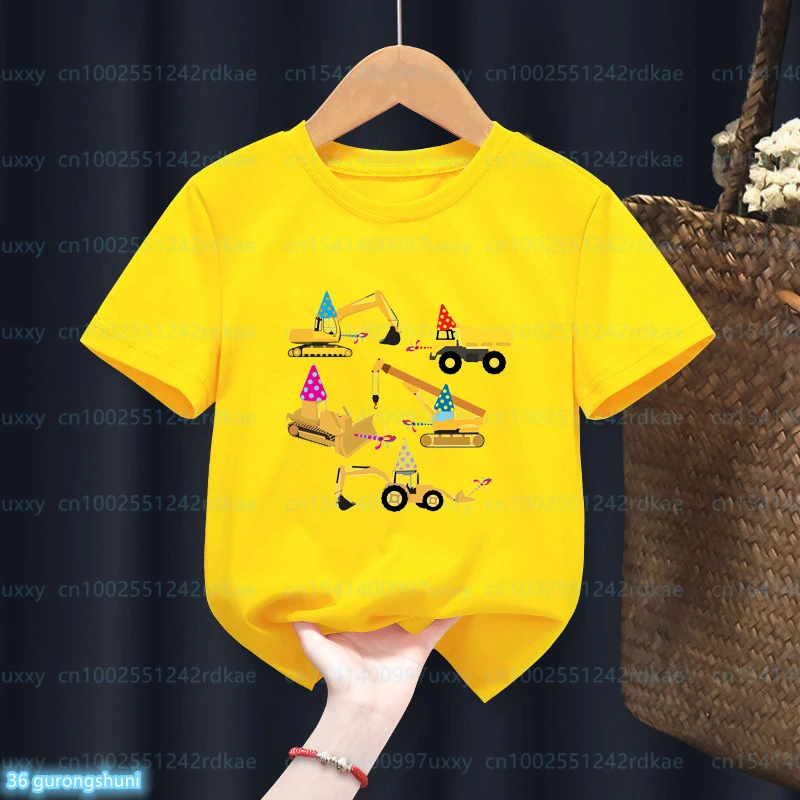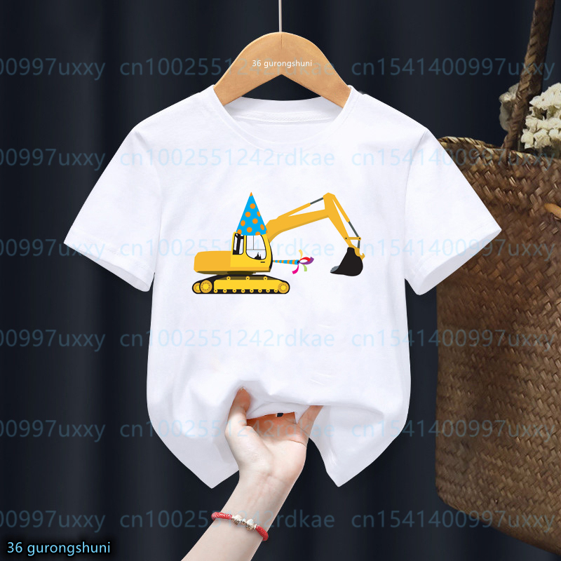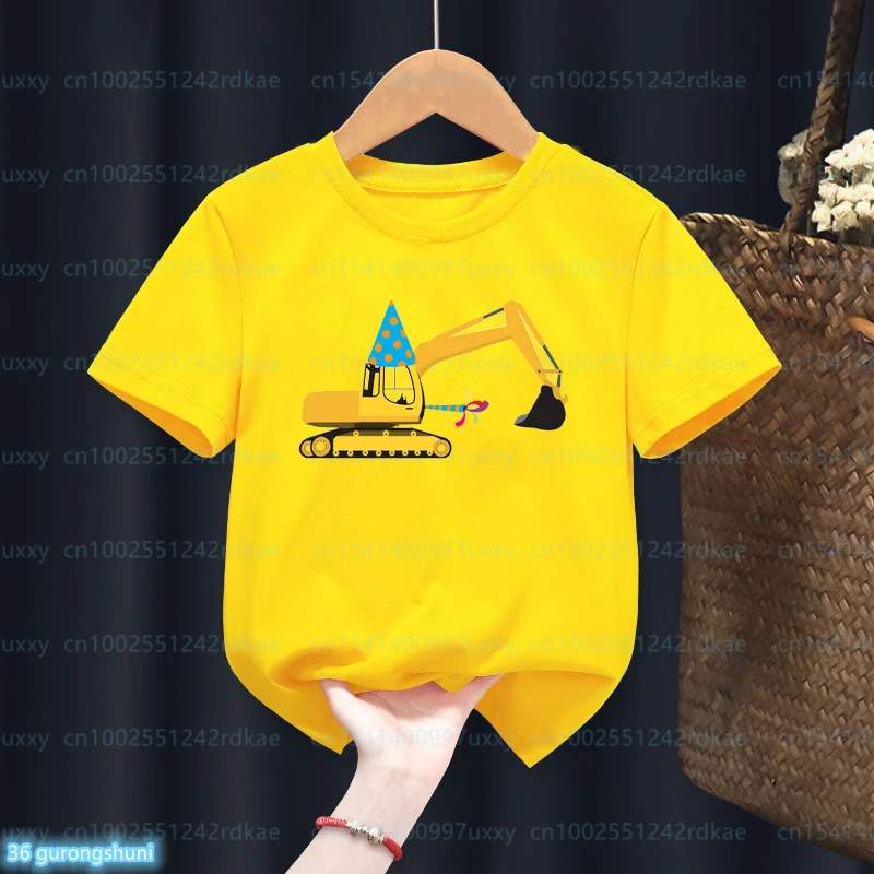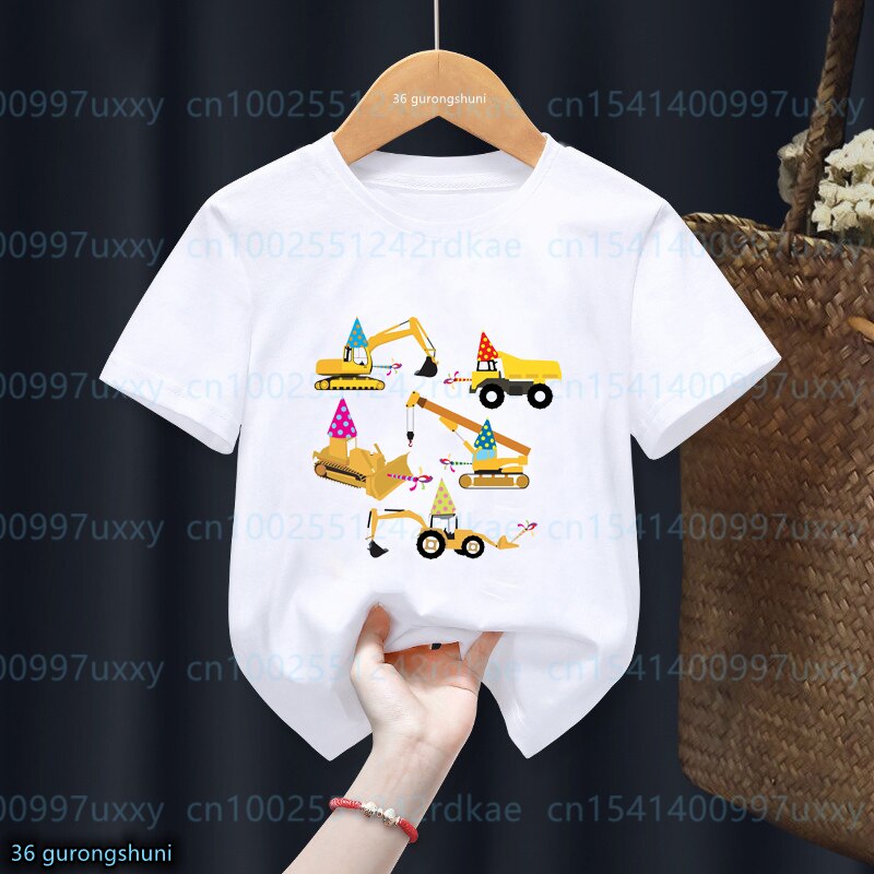 Футболки для мальчиков с рисунком строительных грузовиков на день рождения, милые футболки с графическим экскаватором для малышей, летняя модная одежда для мальчиков