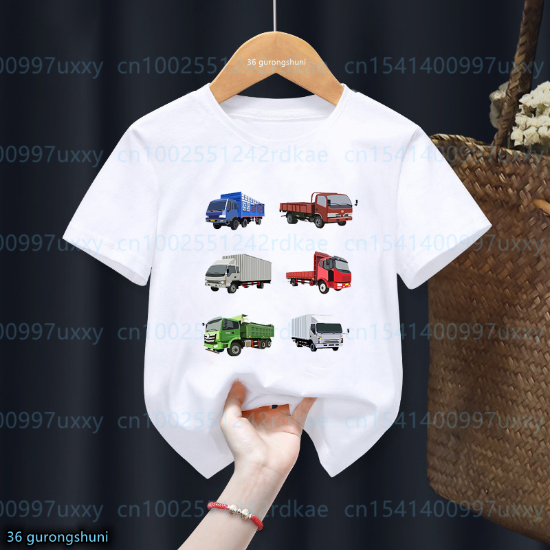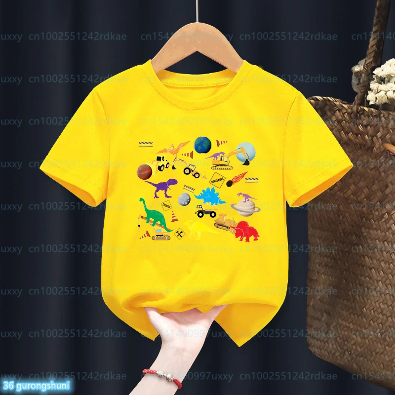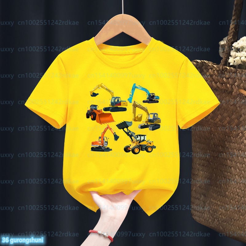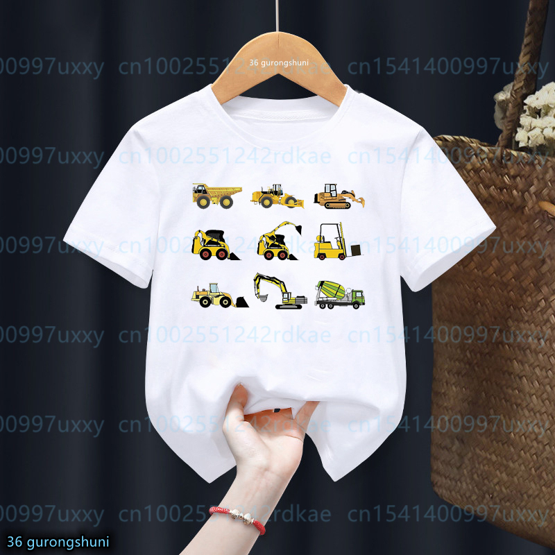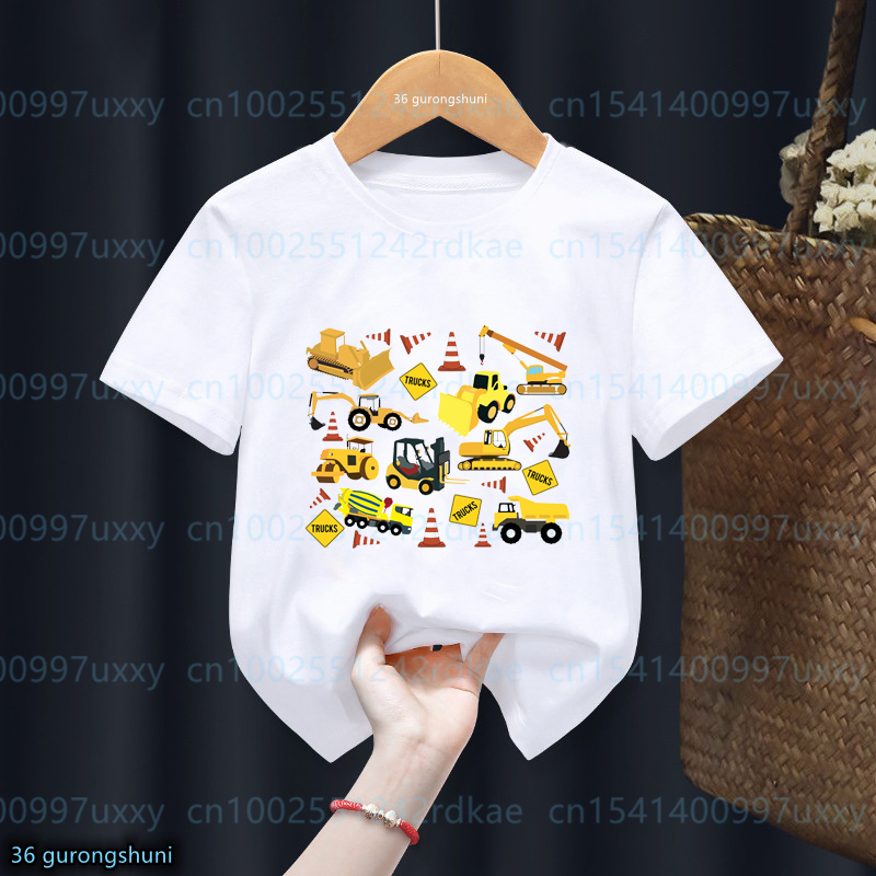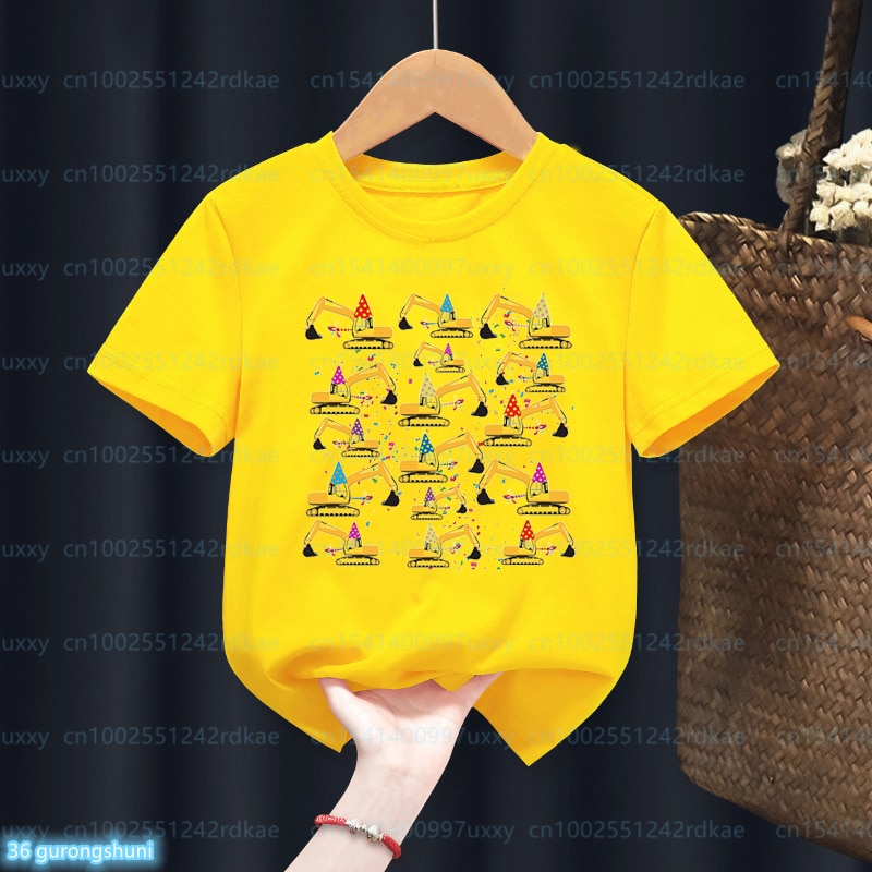 Футболки для мальчиков с рисунком строительных грузовиков на день рождения, милые футболки с графическим экскаватором для малышей, летняя модная одежда для мальчиков
