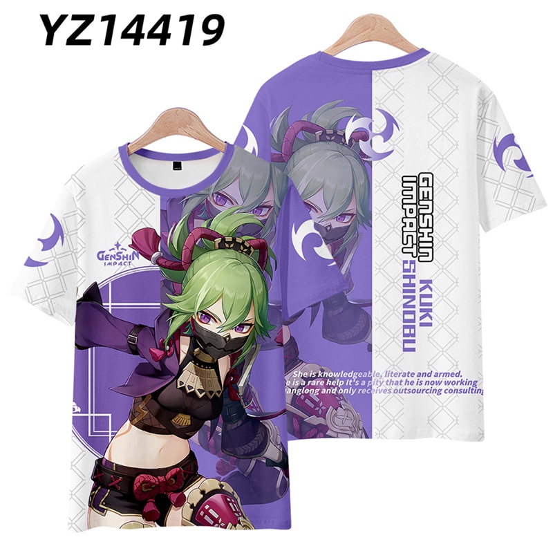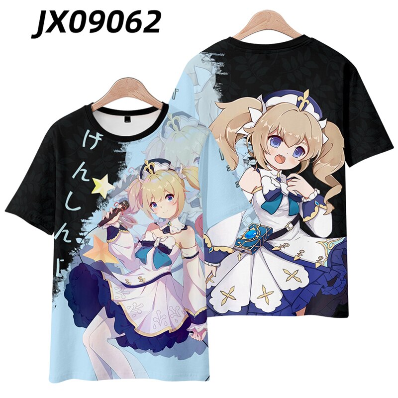 Футболки Genshin Impact Kuki Shinobu Barbara 3D печать для мальчиков и девочек, Повседневная модная футболка большого размера с круглым вырезом, Детские футболки, топы, одежда