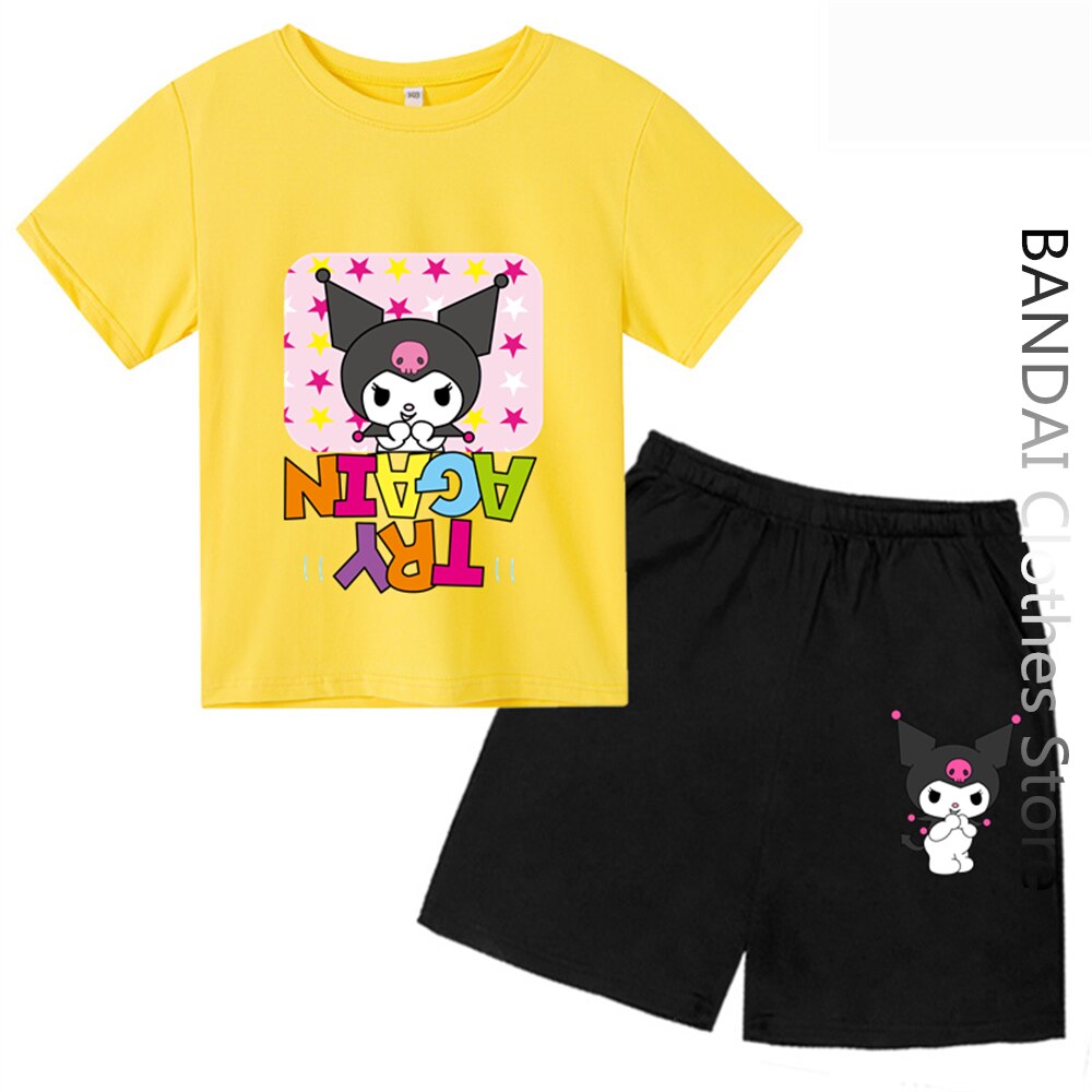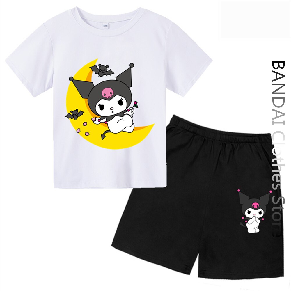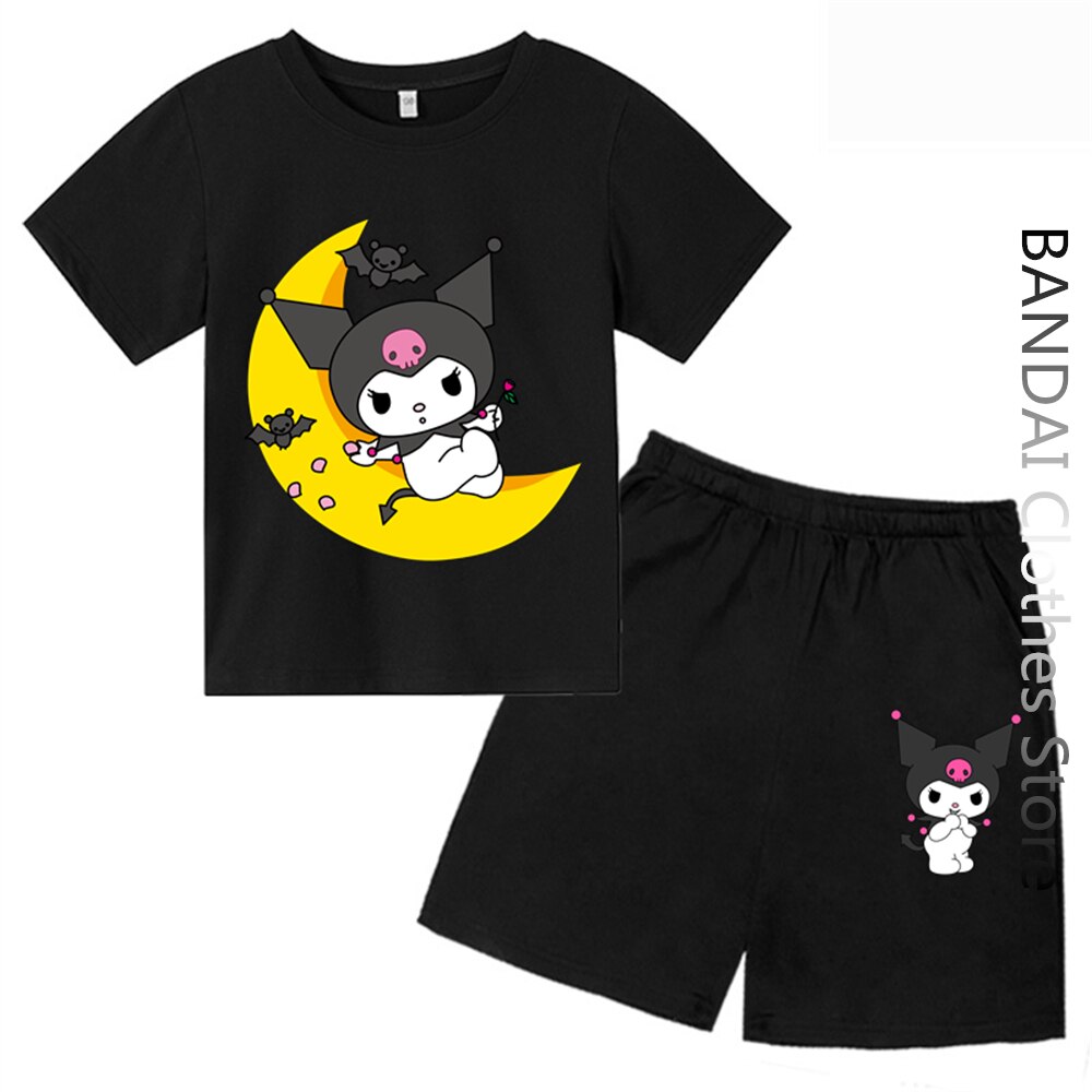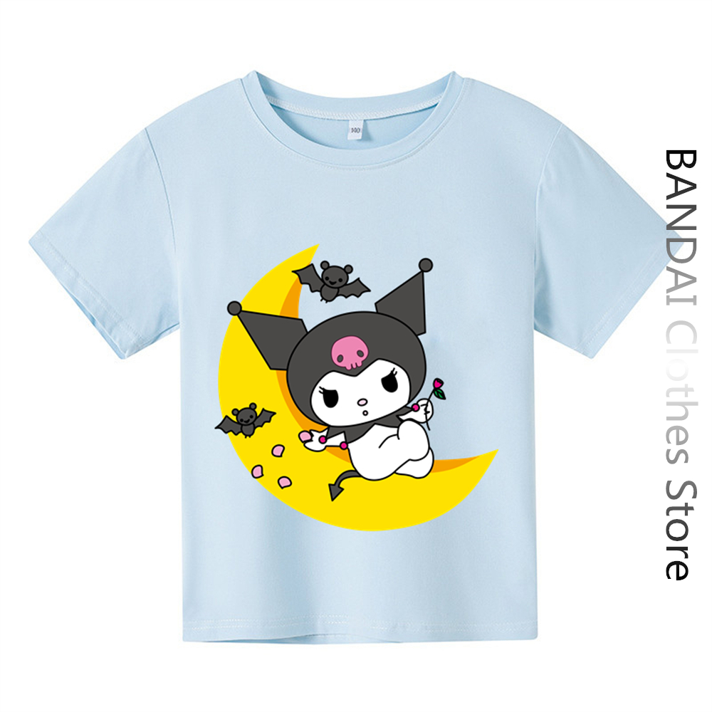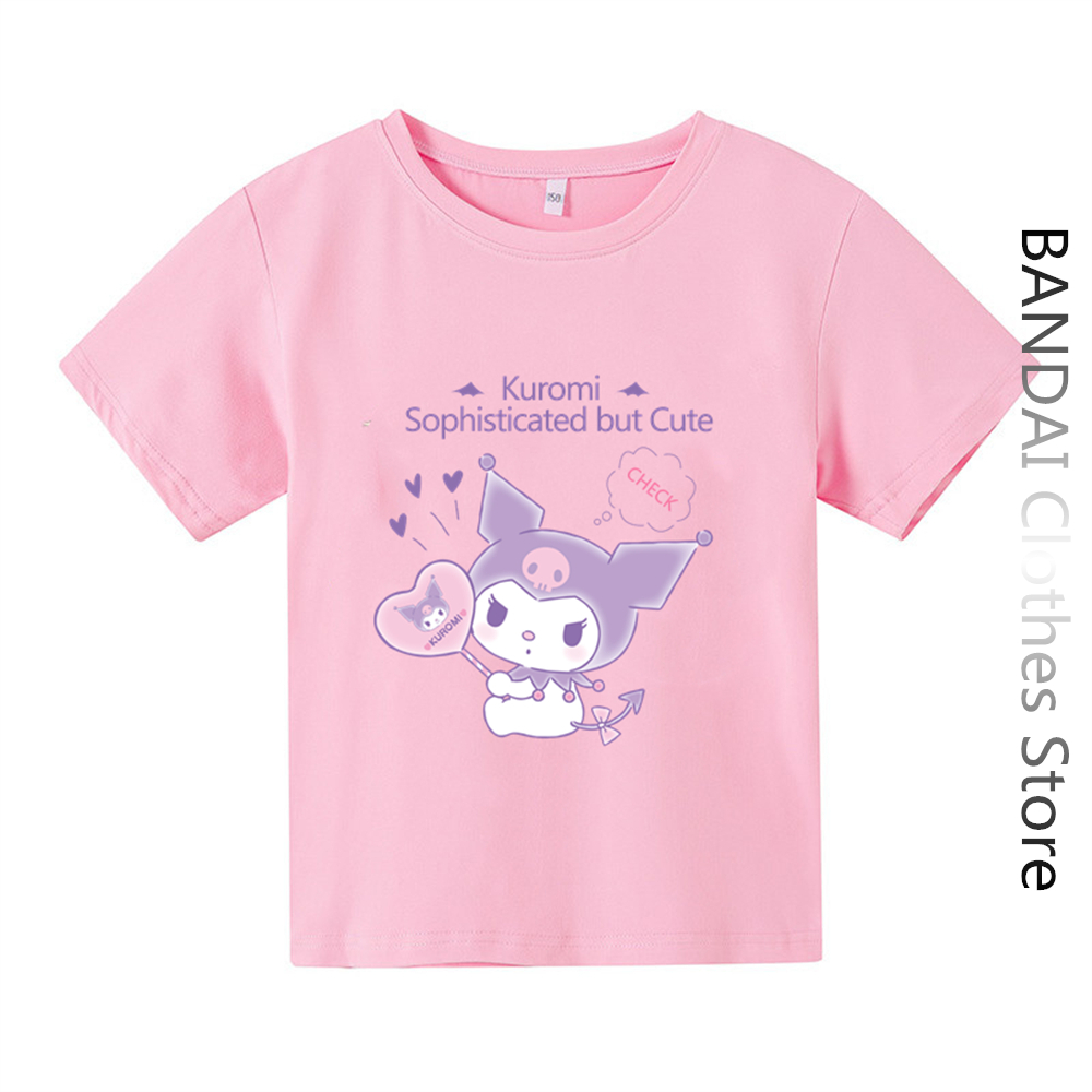 Футболки Hello Kitty Kuromi, детская одежда, модный топ для девочек, женская футболка с коротким рукавом и круглым вырезом, Повседневная летняя детская футболка, комплект топов