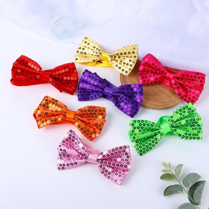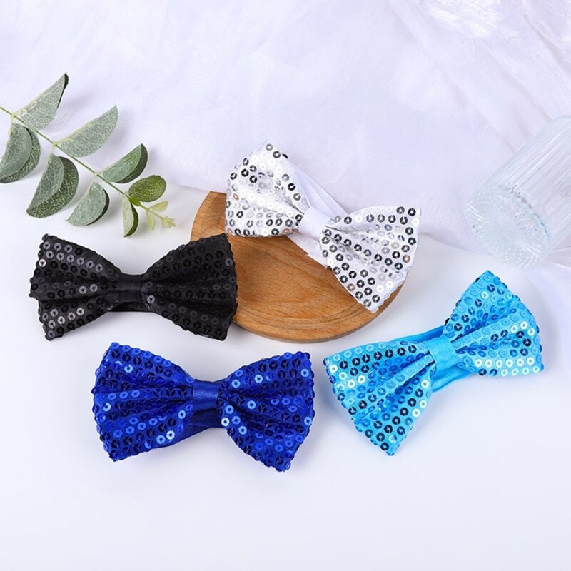 Блестящий галстук-бабочка унисекс с блестками для мужчин и женщин, блестящий Блестящий предварительно завязанный бант с регулируемым ремешком для праздничного танца