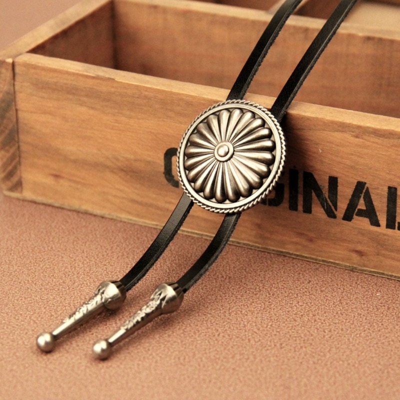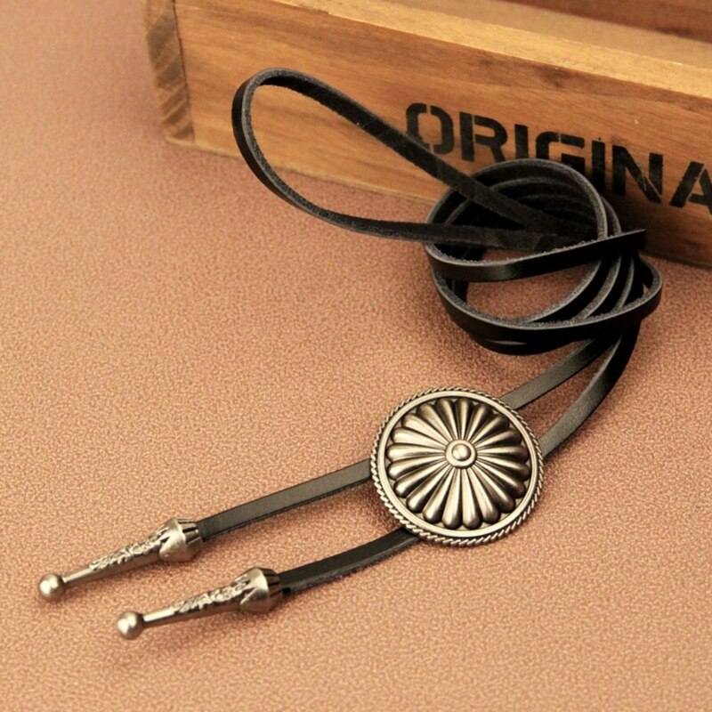 Галстук Bolo, ожерелье, галстук в западном стиле, винтажный круглый галстук Bolo, ковбойский галстук, Кожаный Галстук в ковбойском стиле, Кожаный Галстук на цепочке для свитера D5QB