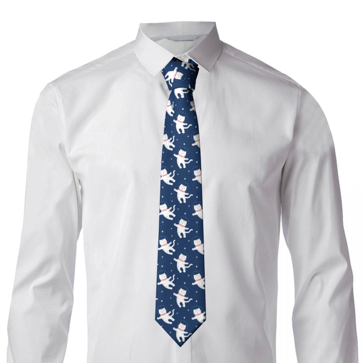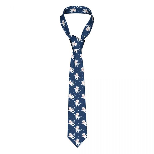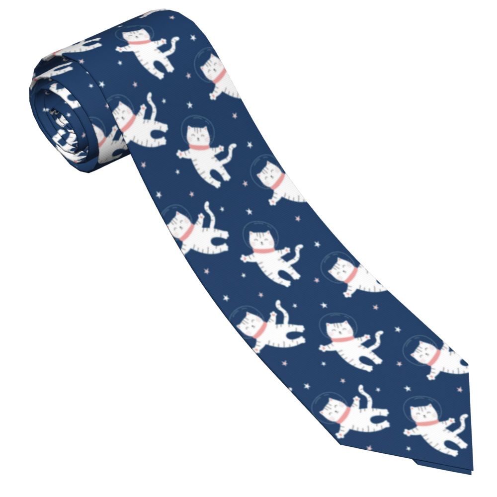 Галстук для мужчин формальный узкий галстук классический мужской милый белый кот в космосе Свадебный галстук узкий галстук для джентльмена