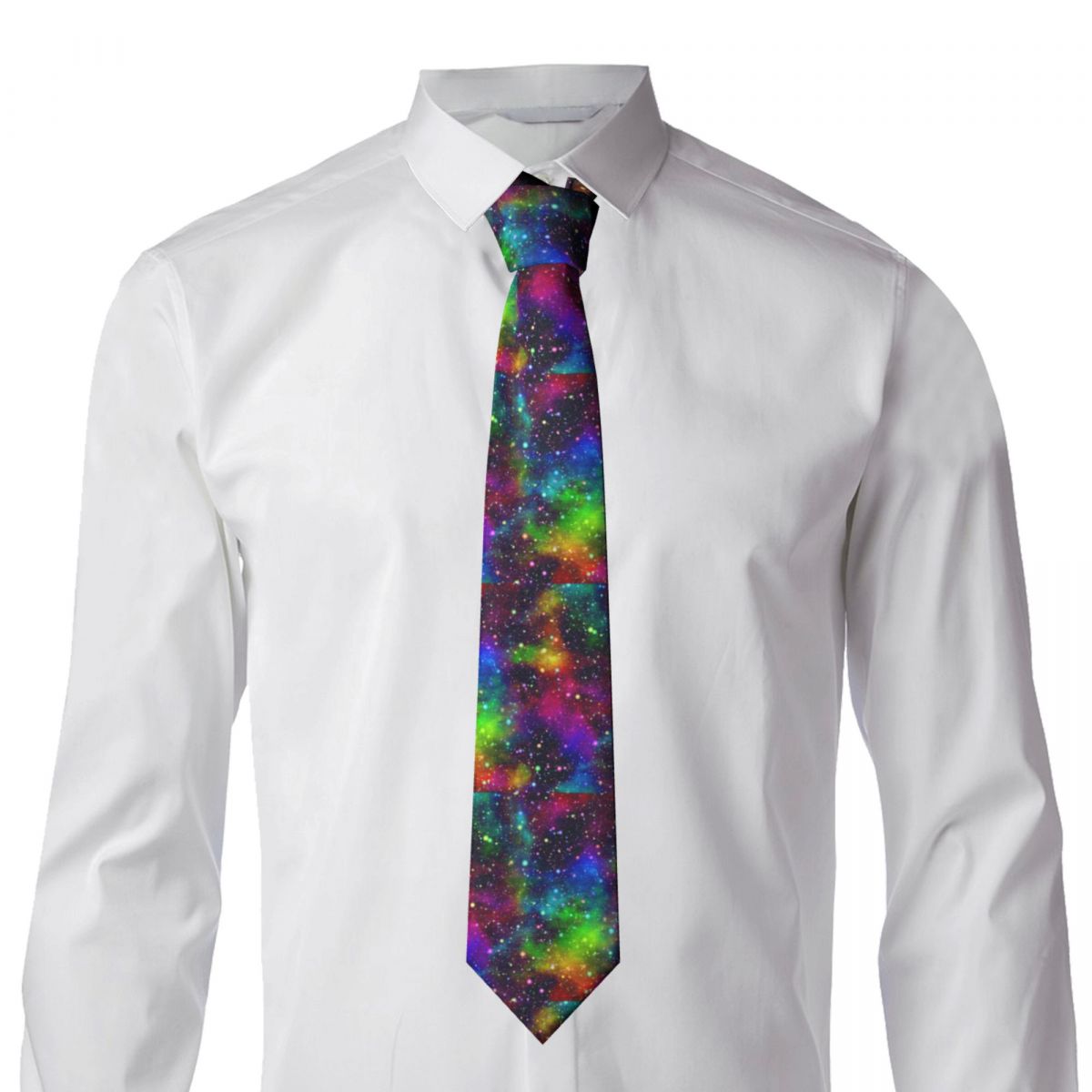 Галстук для мужчин и женщин с изображением туманности ночного звездного неба радужных цветов