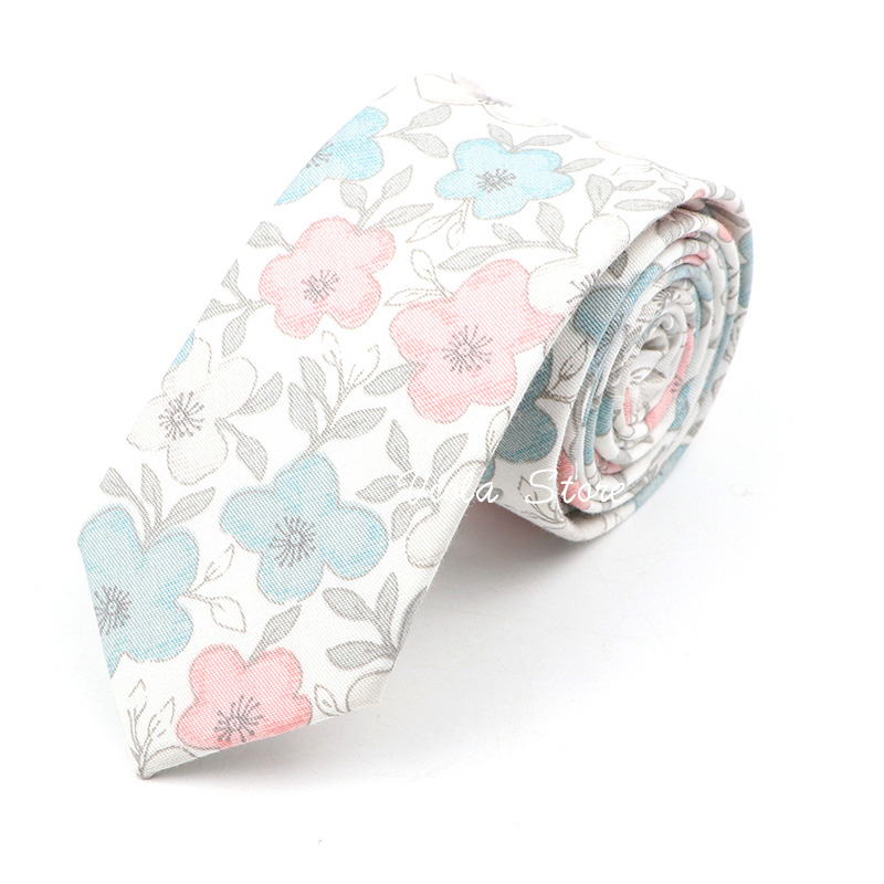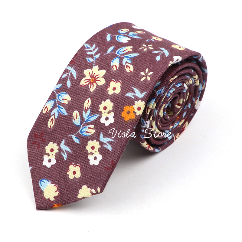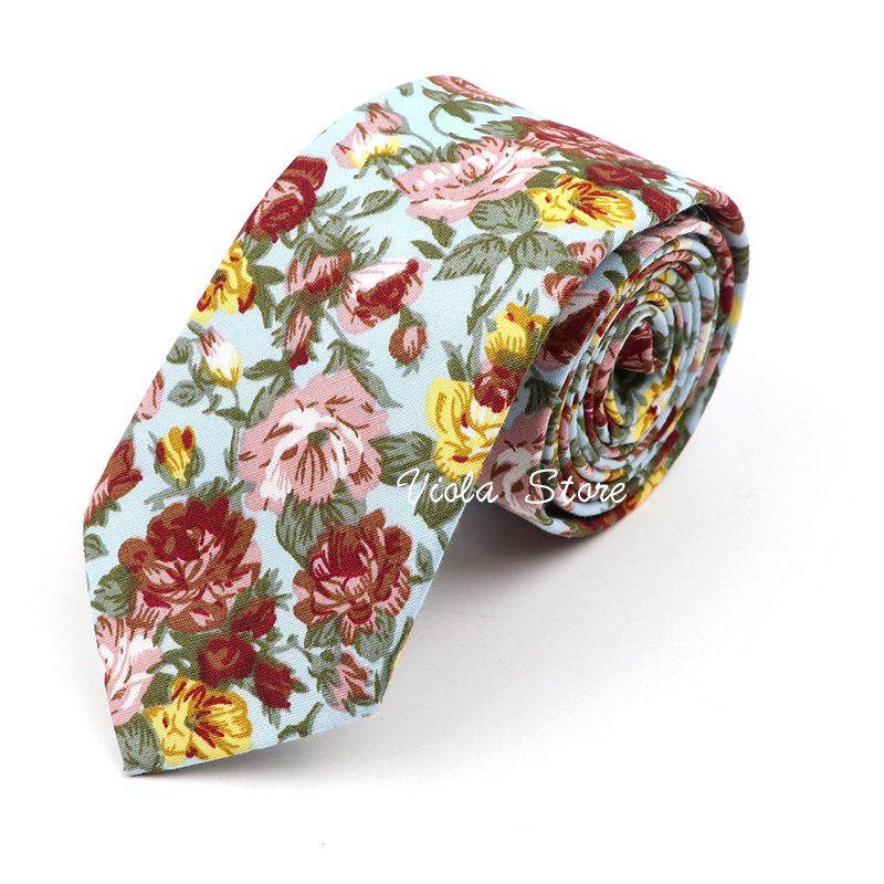 Галстук Мужской Хлопковый, 6 см, с ярким цветочным принтом