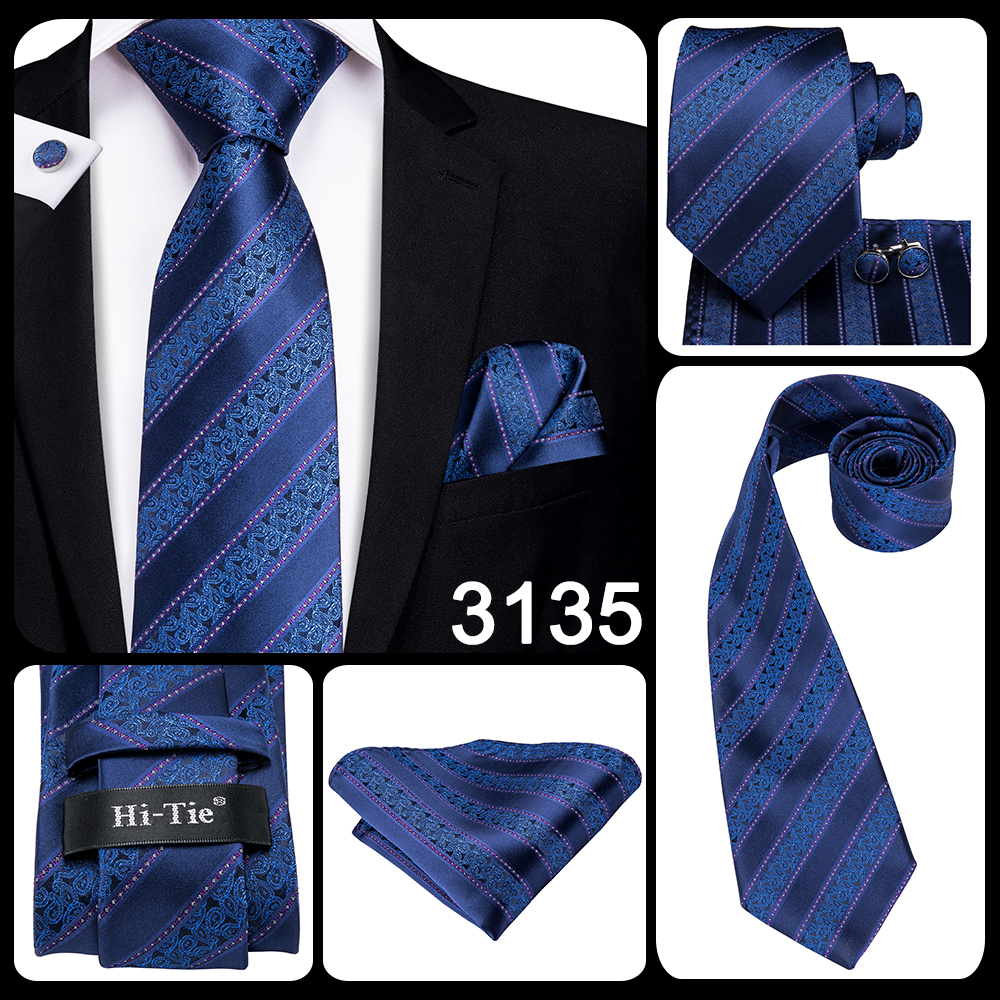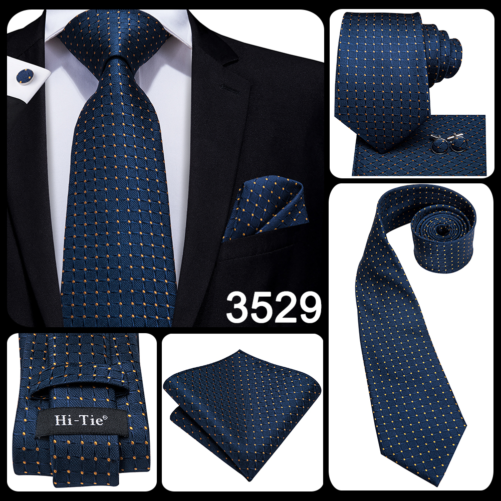 Деловой галстук для мужчин Шелковый синий галстук в горошек Галстук в клетку Запонки для свадьбы Деловой галстук 150 см Привет-галстук SN-3529 Прямая поставка