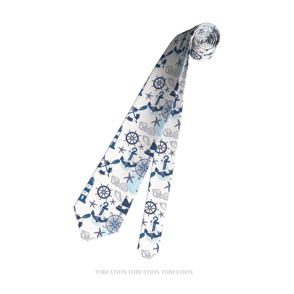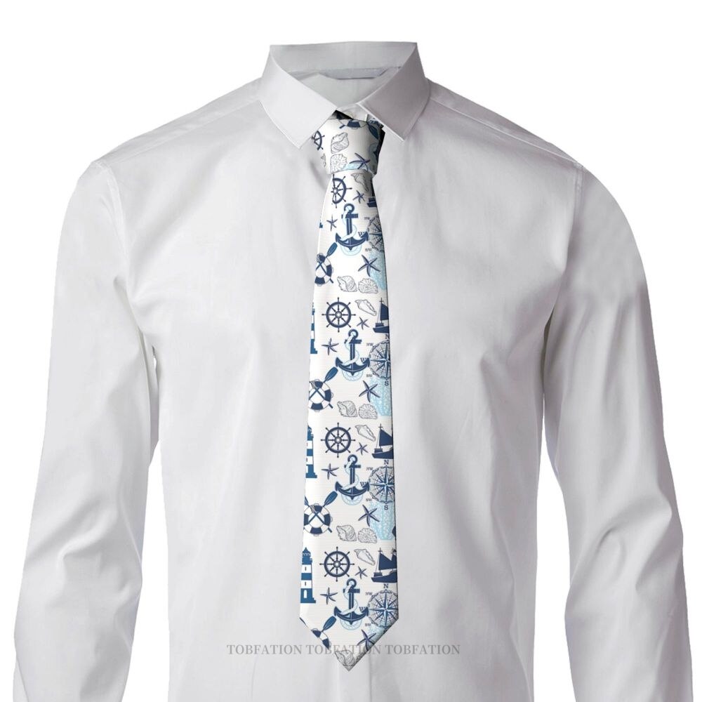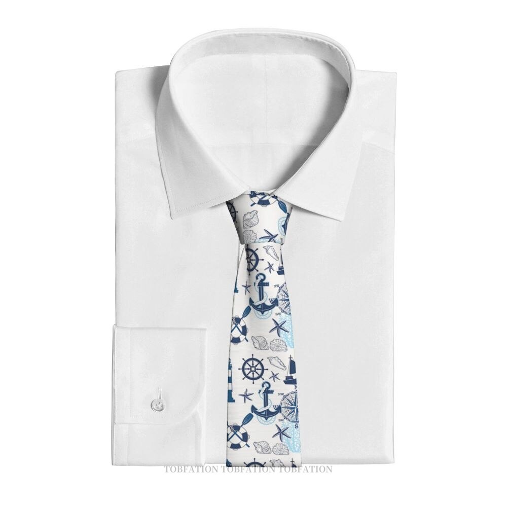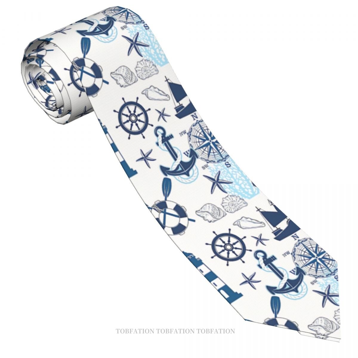 Галстук с морскими ракушками, якорем, морским компасом, Новый галстук с 3D принтом, ширина 8 см, полиэстер, аксессуары для детской одежды, украшение