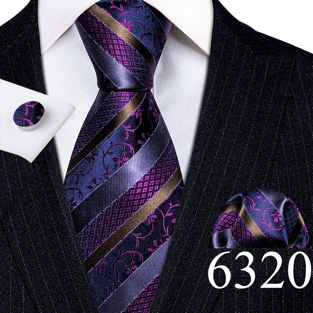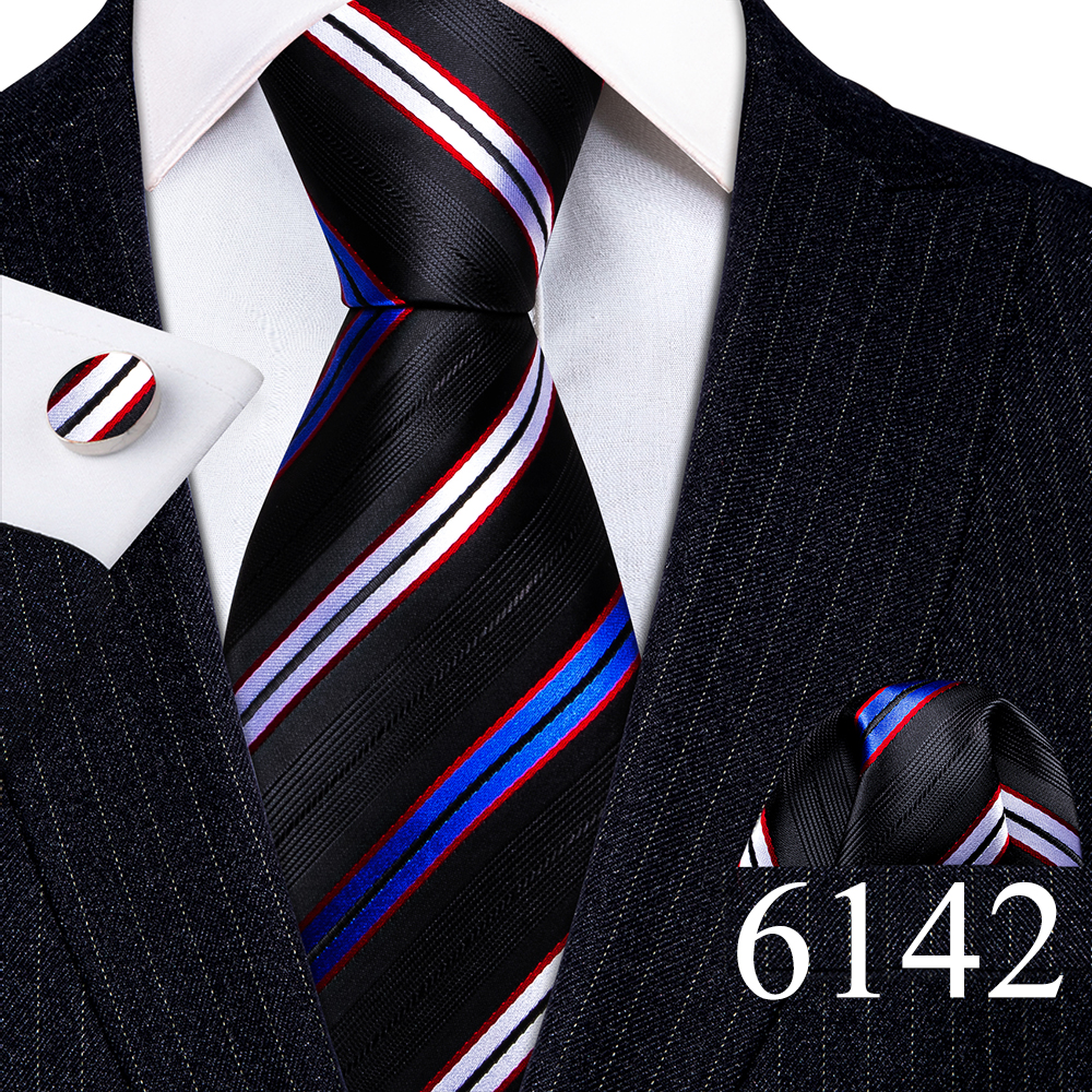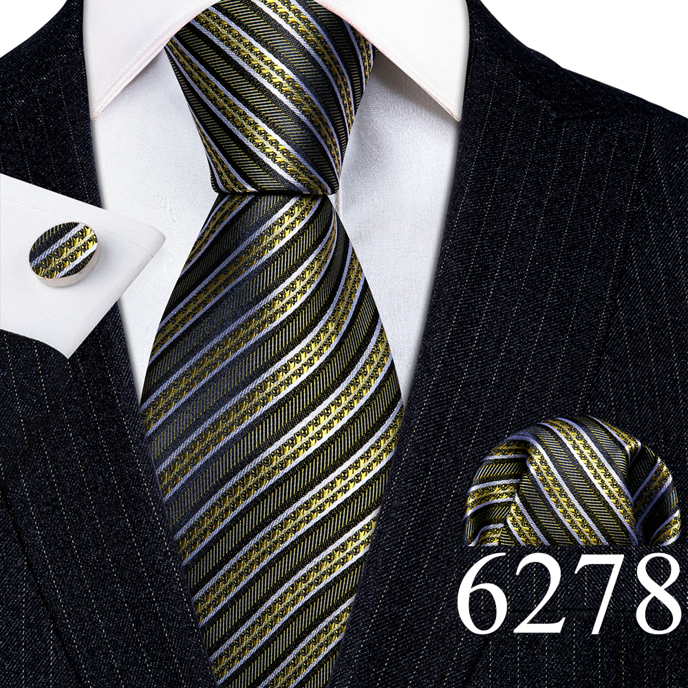 Галстуки для мужчин платок запонки синий красный черный золотой зеленый фиолетовый белый полосатый Свадебный деловой шейный галстук набор Барри · Ван