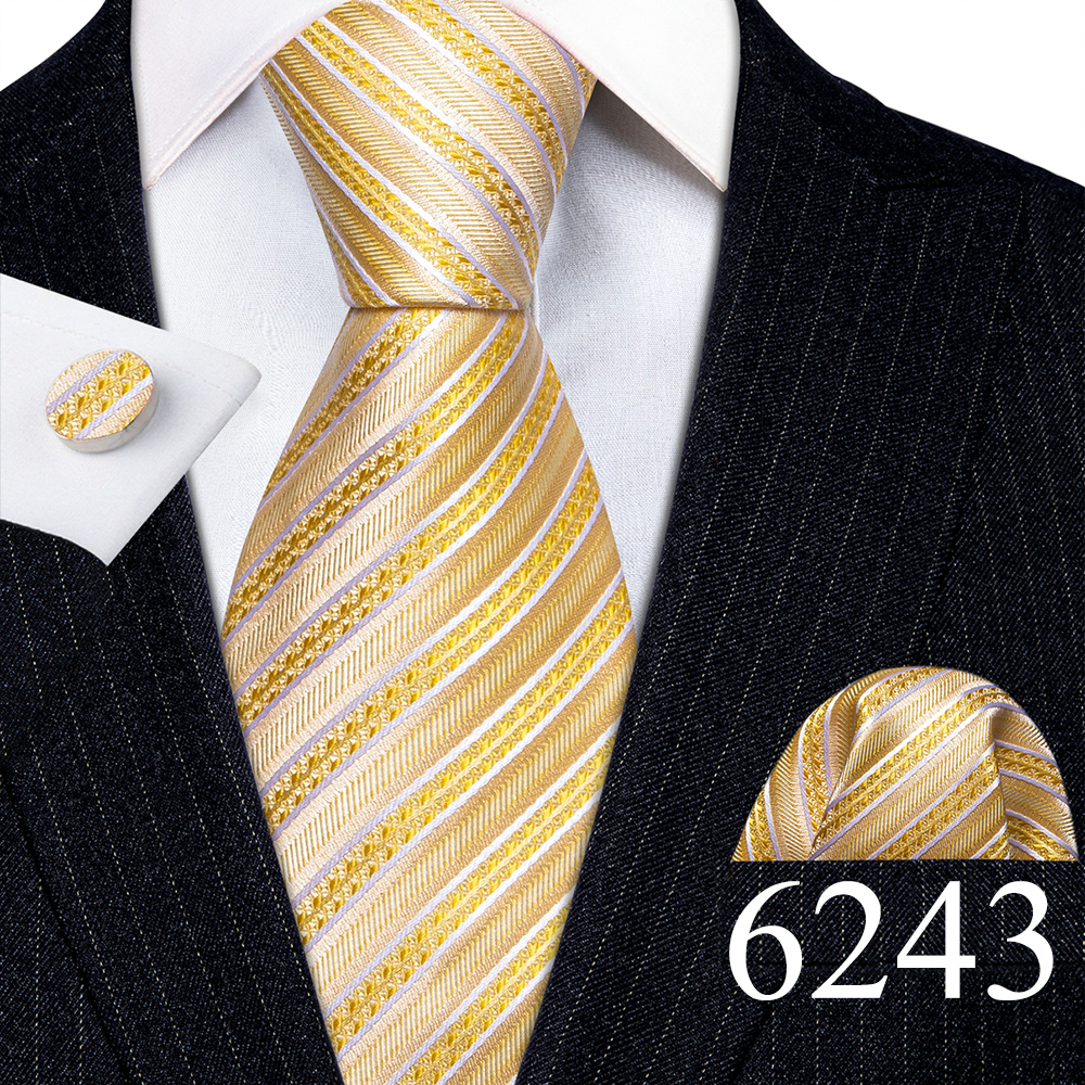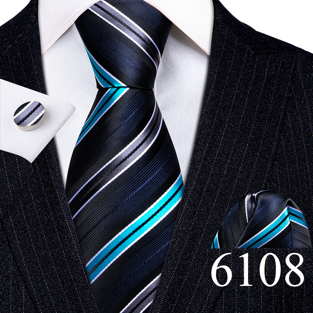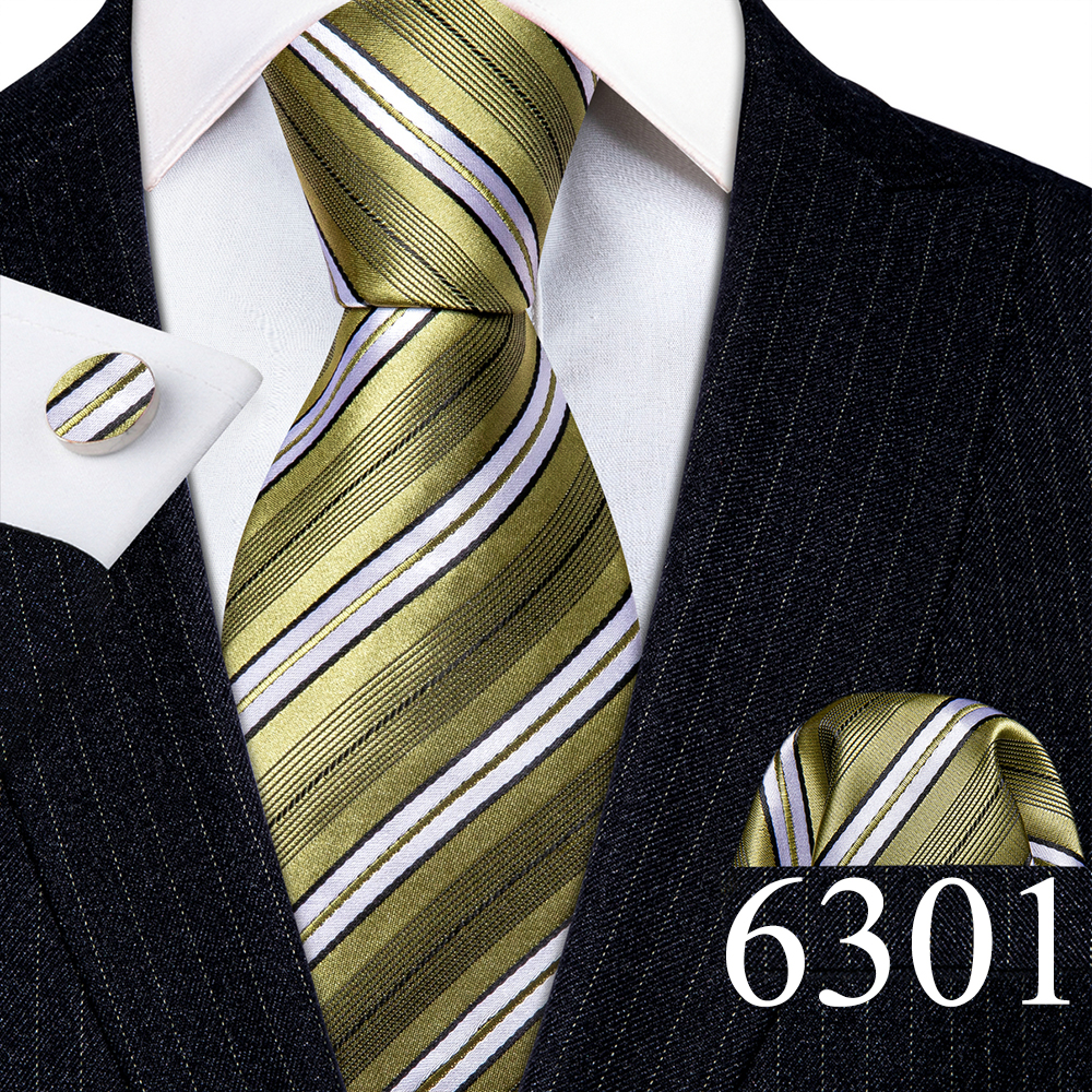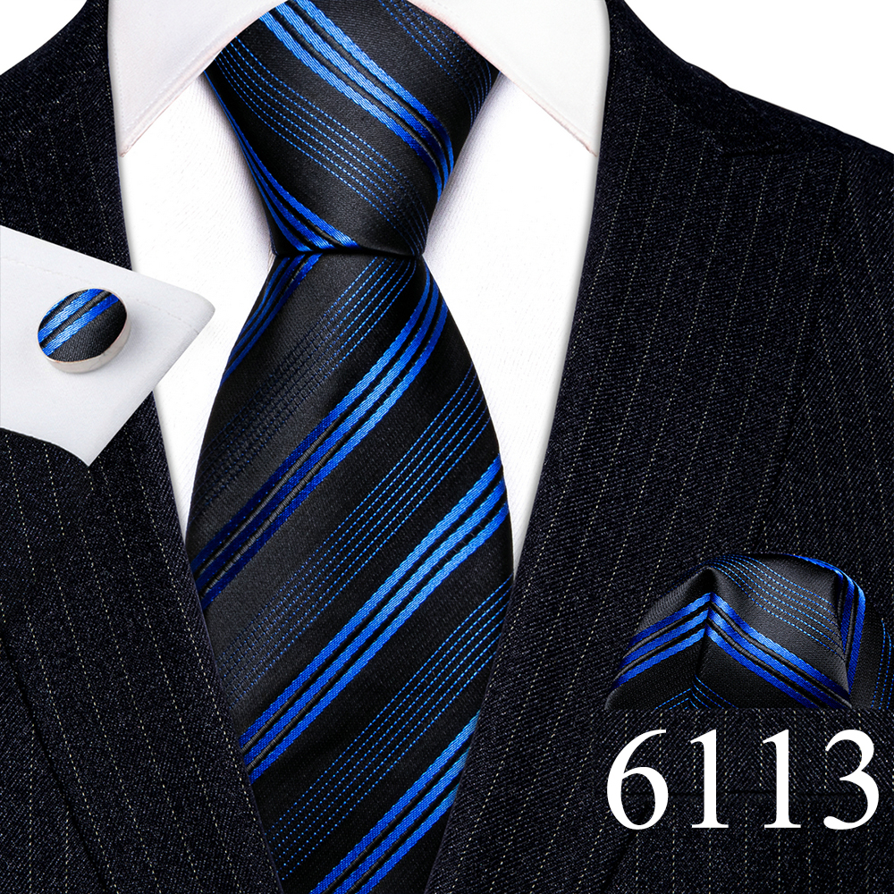 Галстуки для мужчин платок запонки синий красный черный золотой зеленый фиолетовый белый полосатый Свадебный деловой шейный галстук набор Барри · Ван