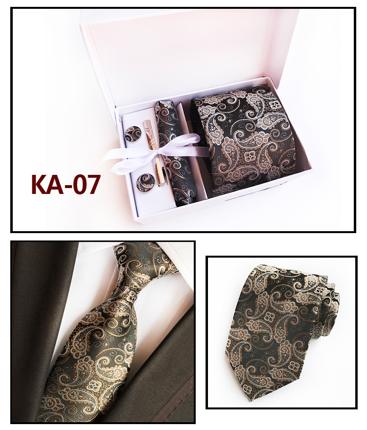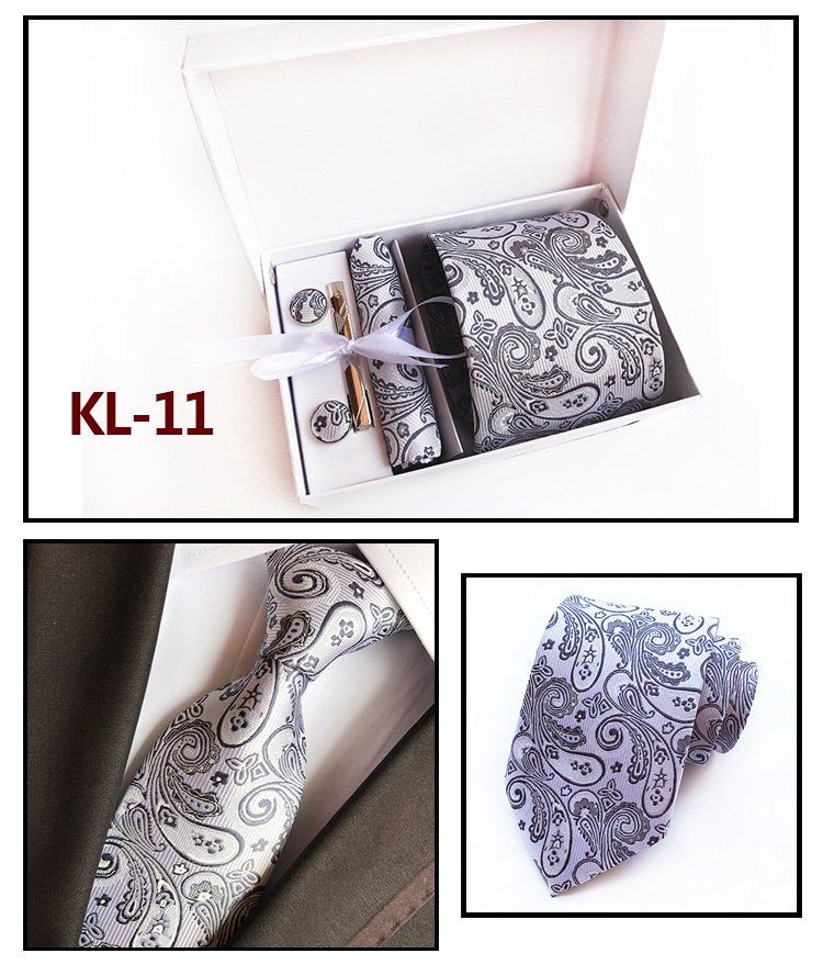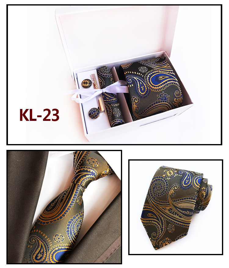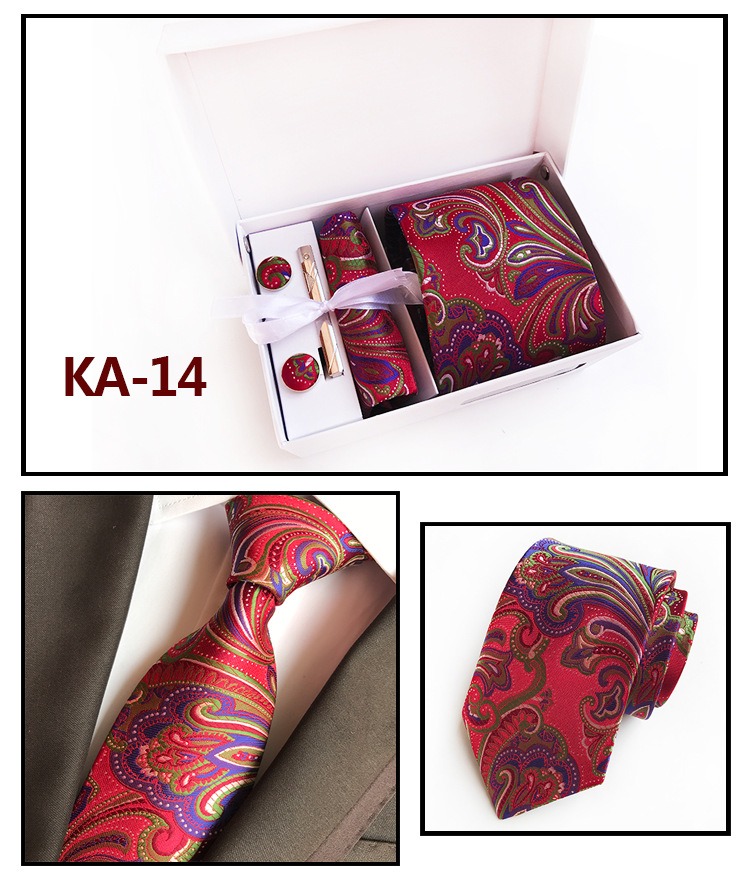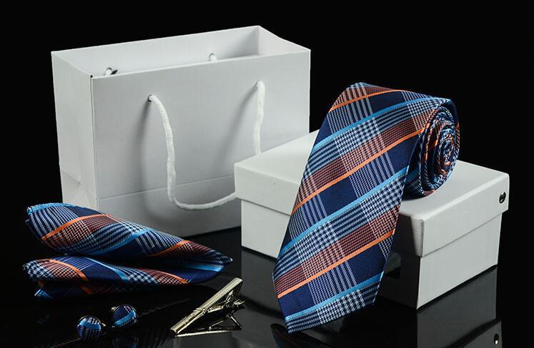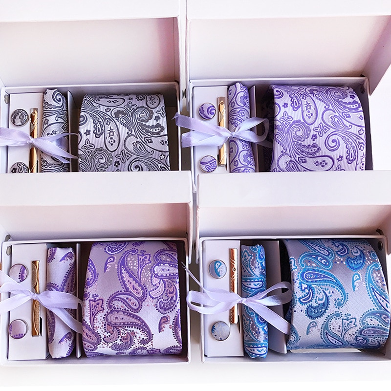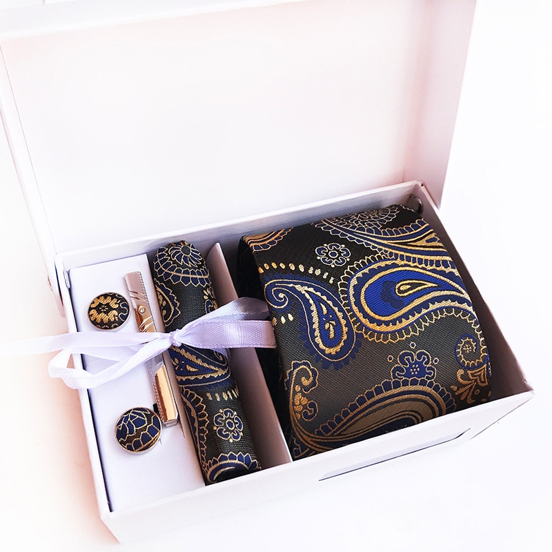 Галстуки для мужчин в подарочной коробке, набор из жаккардового галстука, кармана, квадратных запонок, носовых платков, формальных платьев