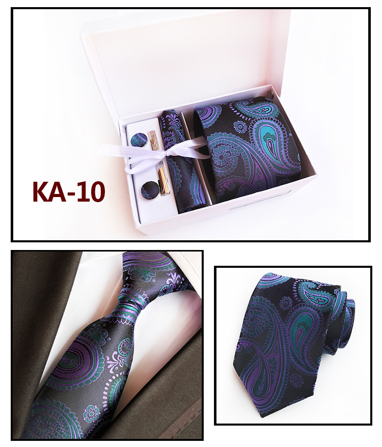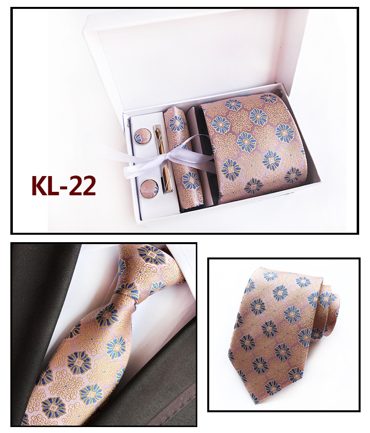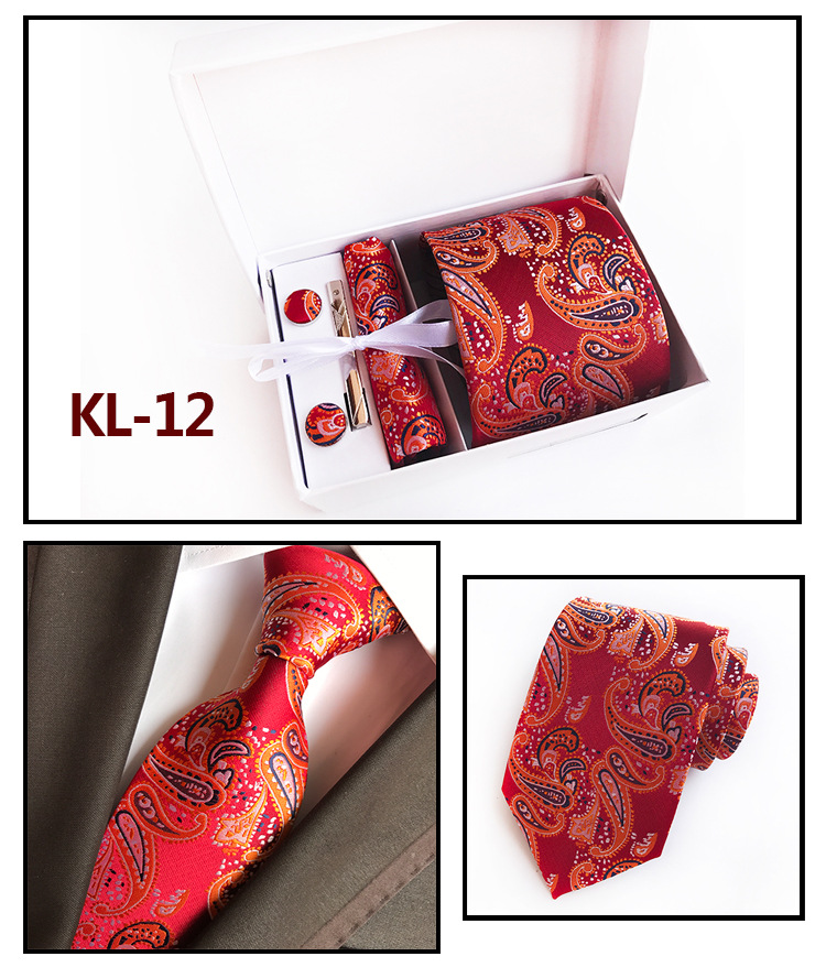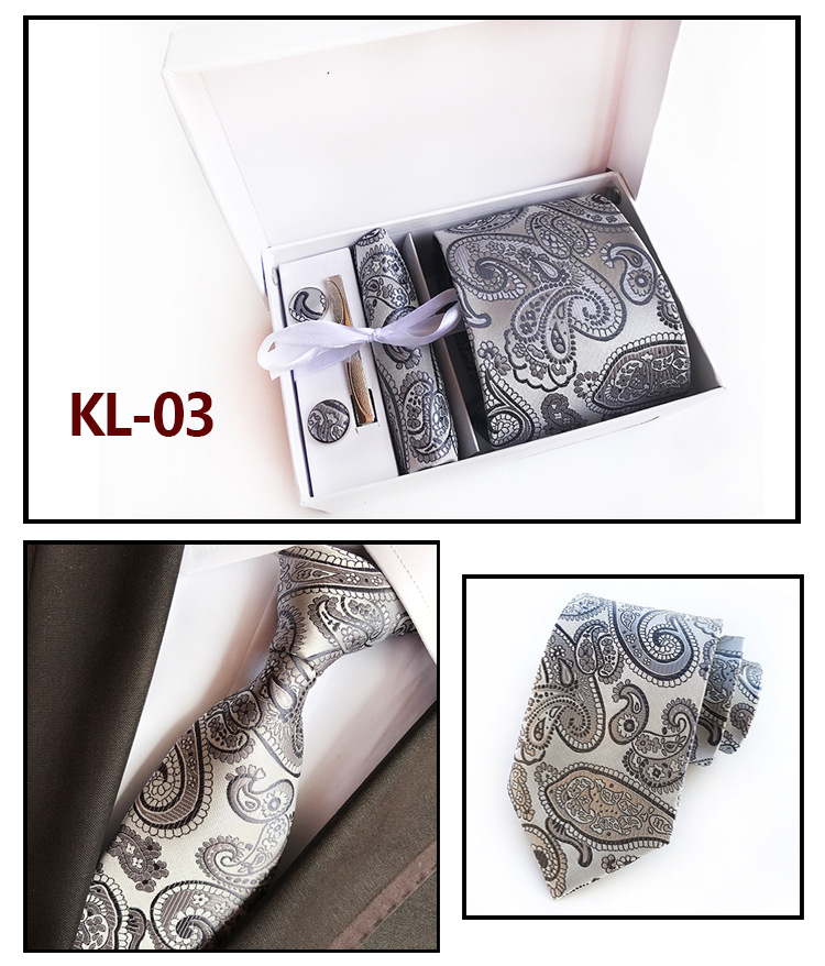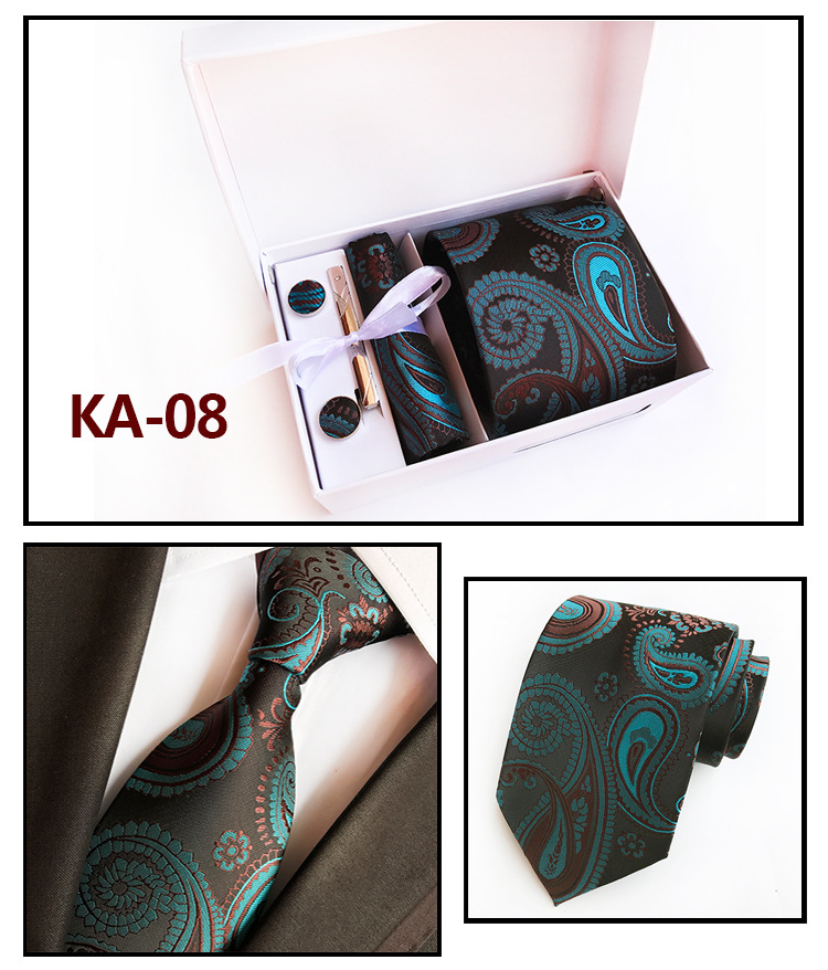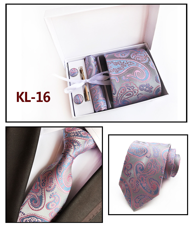 Галстуки для мужчин в подарочной коробке, набор из жаккардового галстука, кармана, квадратных запонок, носовых платков, формальных платьев