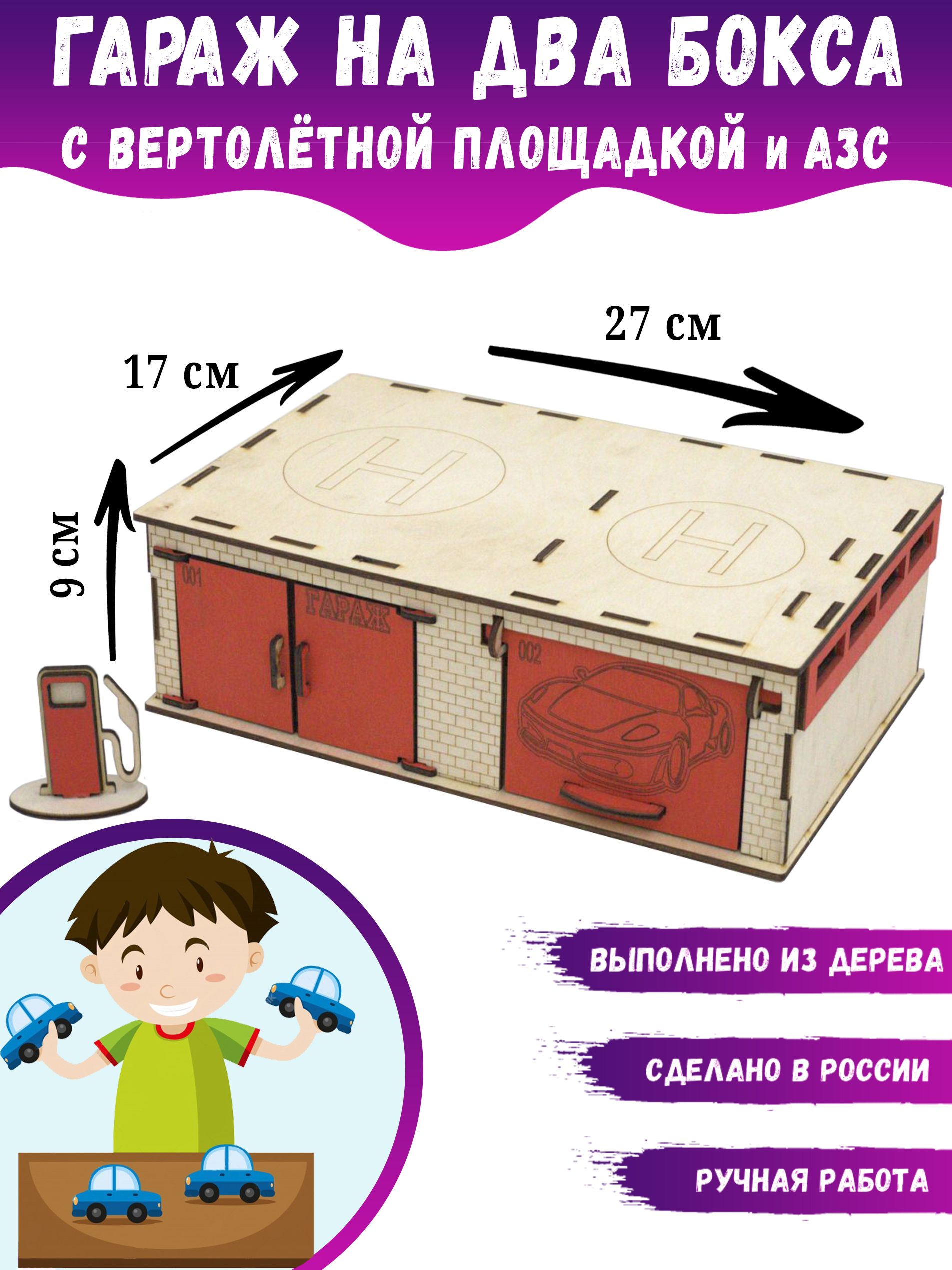 Описание: Игрушечный гараж ручной работы выполнен из экологически чистой фанеры и имеет покрытие безопасными красками на водной основе. Это отличный подарок мальчику по любому поводу. Наш деревянный гараж для детских машинок имеет распашные ворота, которые открываются и закрываются. Эта деревянная игрушка для мальчиков имеет окошки, имитацию кирпича и гравировку на фасаде. Для ребенка эта модель гаража будет не только любимая игрушка, но и развивающая игрушка, ведь в нем собрано столько идей для игры, будоражащих фантазию. Это реалистичная миниатюра настоящего гаража, что без сомнений восхитит и увлечет Вашего малыша! А еще это игрушечная парковка для машинок и гараж с вертолетной площадкой. Наш игрушечный гараж для машинок подарит малышу массу эмоций, он станет отличным подарком мальчику на день рождения, новый год, 1 сентября, 23 февраля и даже просто так без повода.
