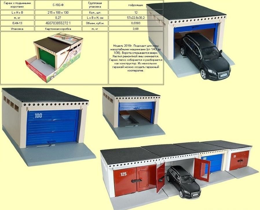 Гараж разборный, при желании его можно дополнить другими блоками из серии, создав целый гаражный кооператив.