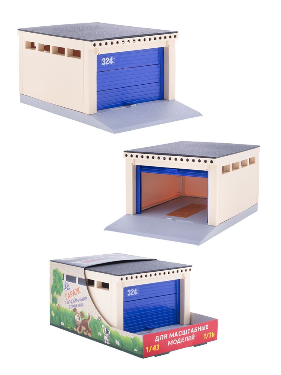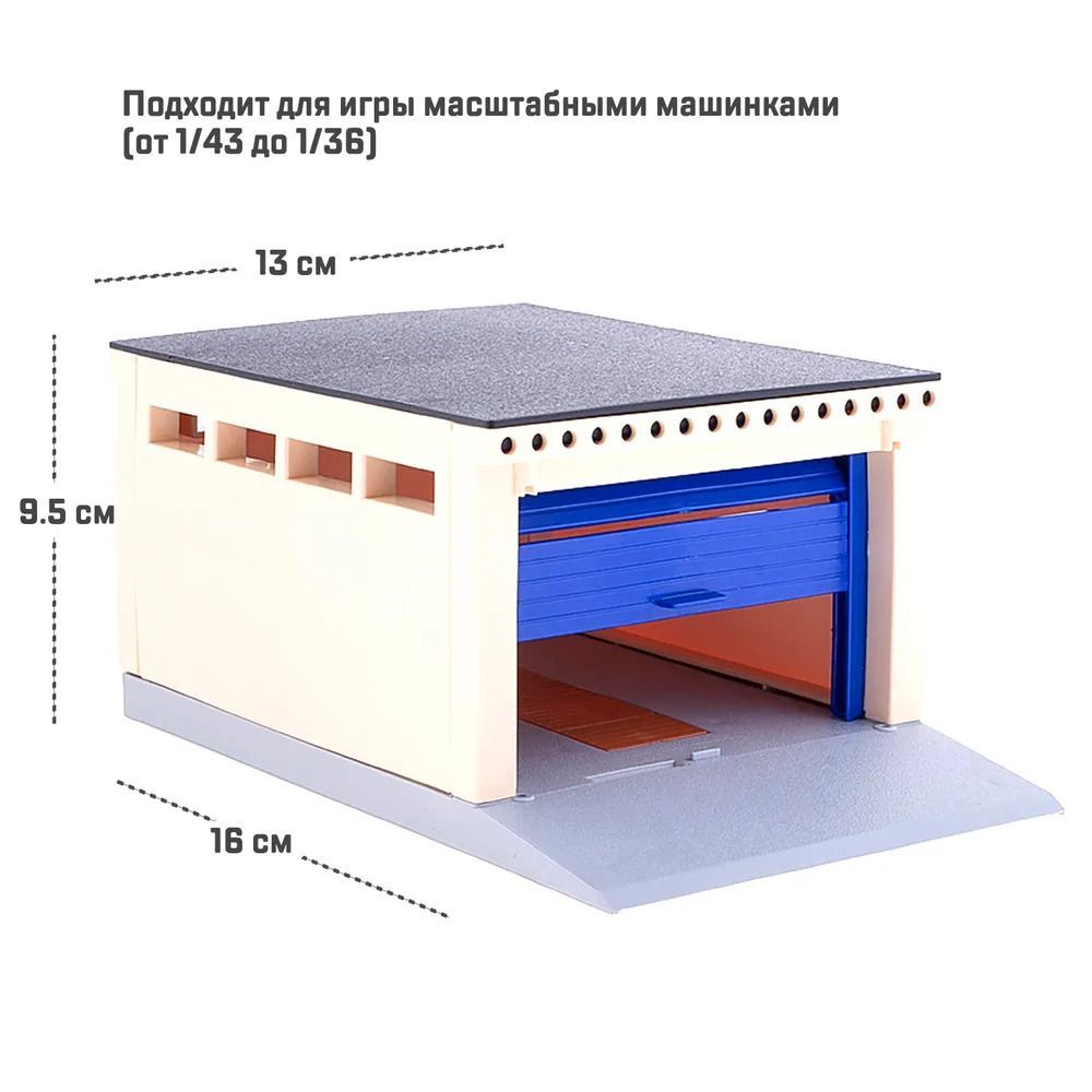 Гараж Форма с подъемными воротами для масштабных моделей, синий / для машинок масштаб 1:43, 1:36