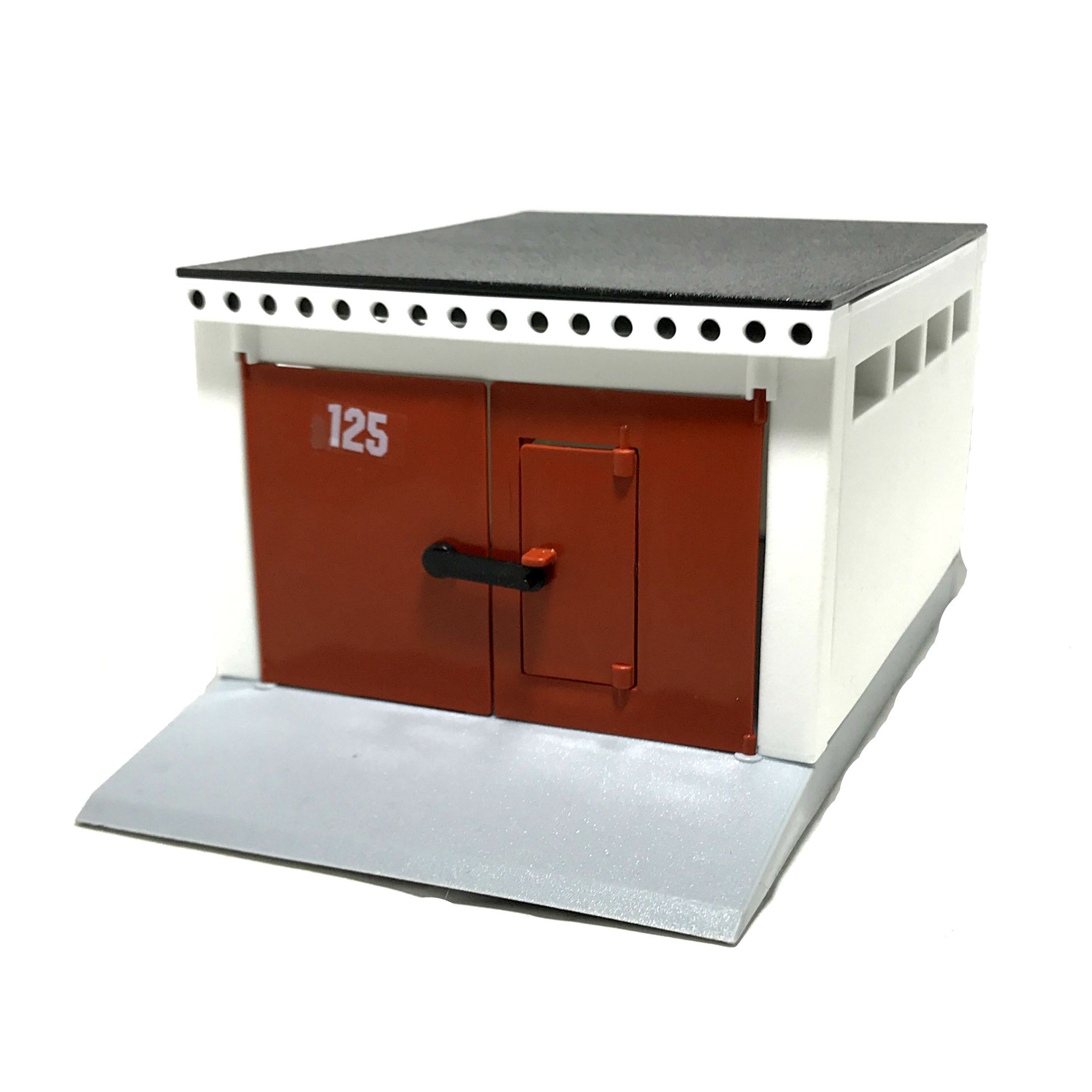 Гараж специально создан для детских металлических машинок-моделек стандартного размера (в масштабе 1:43, 1:36, либо чуть крупнее или чуть мельче). Ворота распахиваются в стороны (2 створки). Внешне ворота напоминают классические гаражные ворота советских времен (как были у дедушки). У одной из створок ворот сделана дверца для человечка-водителя (так было у настоящих гаражей - в них можно было входит внутрь не распахивая большие двери. Внутри гаража есть выемка имитирующая смотровую яму, яма прикрывается 4-мя досточками которые так же идут в наборе.