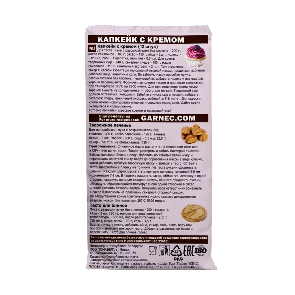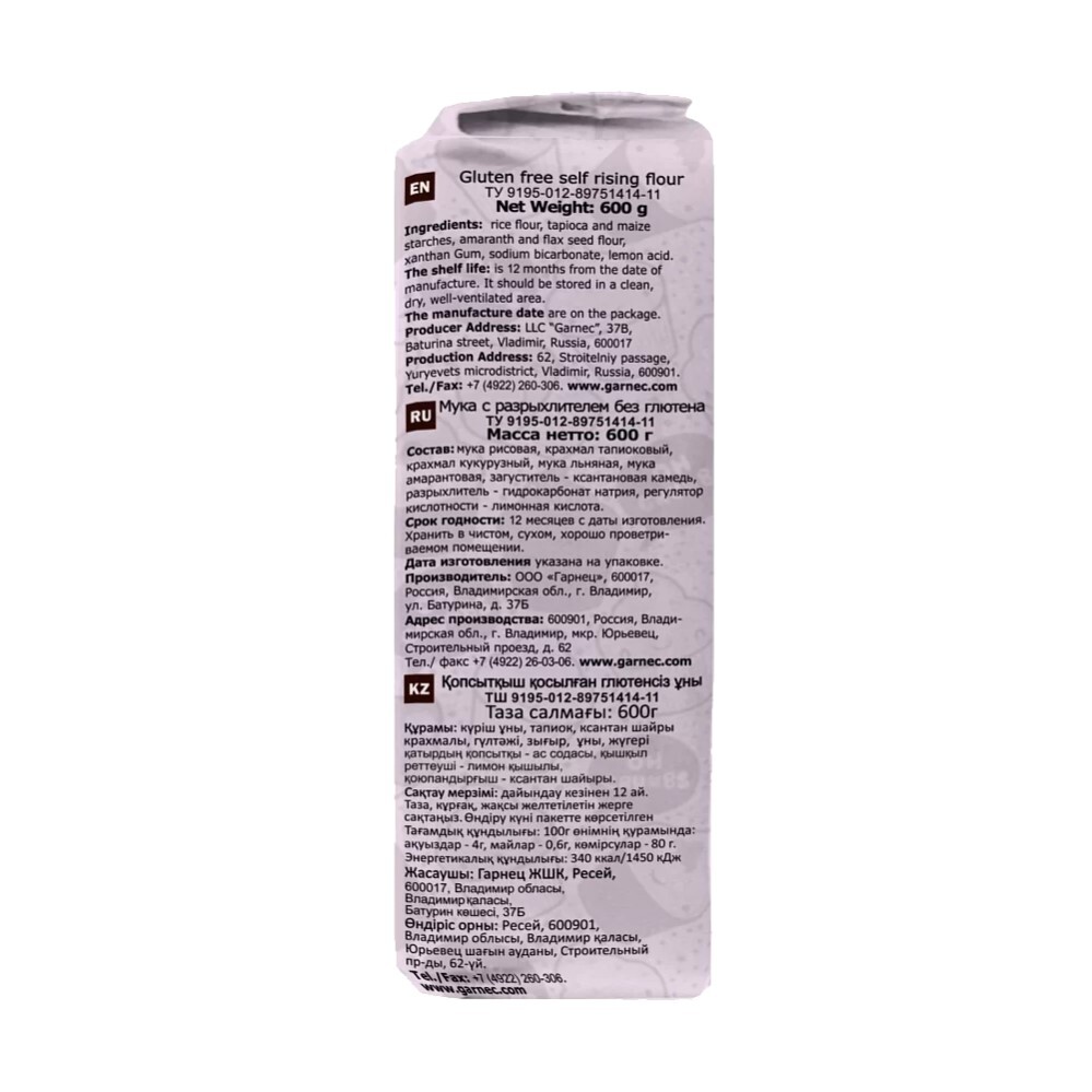 GARNEC Гарнец мука кондитерская с разрыхлителем без глютена "Flour" 600 г.