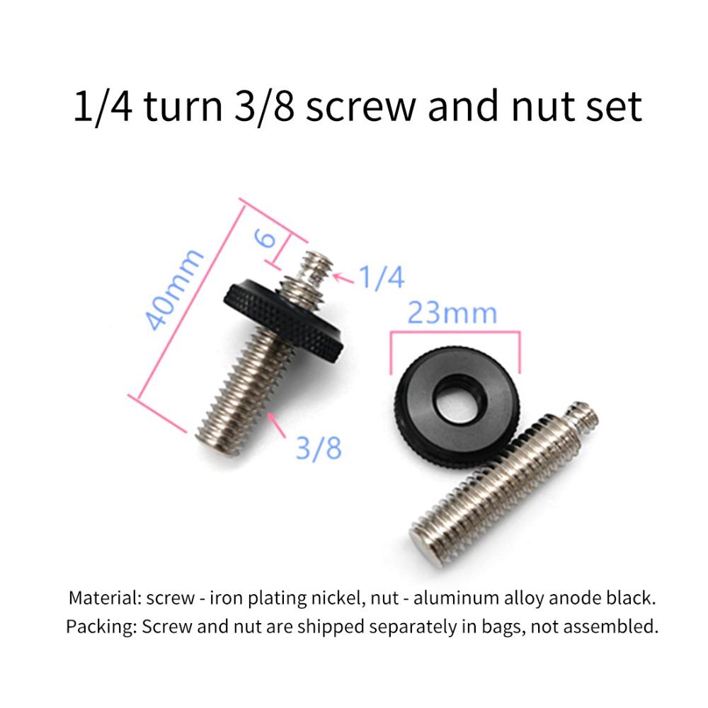 Feature: 1/4 male to 3/8 male adapter screw with nut used for camera tripod etc..