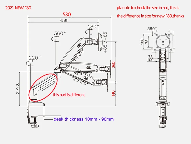 Настольное крепление F80 можно установить на краю стола или втулку в любом месте рабочего стола. Это идеальный офисный аксессуар, который позволяет поворачиваться по горизонтали на ± 180 ° для обмена информацией с близлежащими коллегами или поворота на 90 ° для демонстрации перевернутых изображений. Кронштейн монитора F80 изготовлен из алюминиевого сплава с пластиковым внешним видом. Красивый дизайн с интегрированным управлением кабелями обеспечивает чистый и беспроблемный вид.