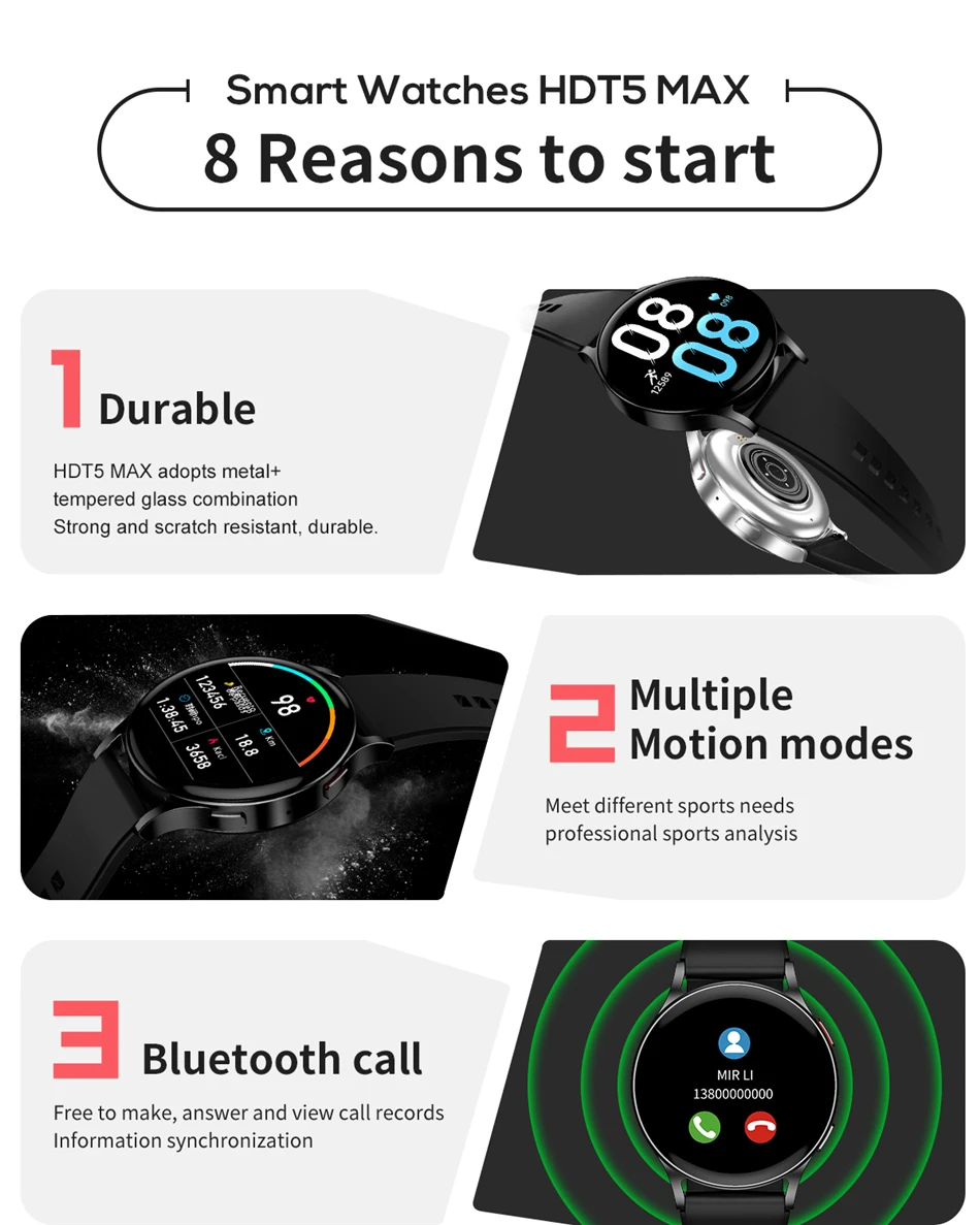 GEJIAN 2023 New Noninvasive Blood Pressure Smart Health Watch Thermometer Heart Rate Monitor Bluetooth Sports Smartwatch for Men