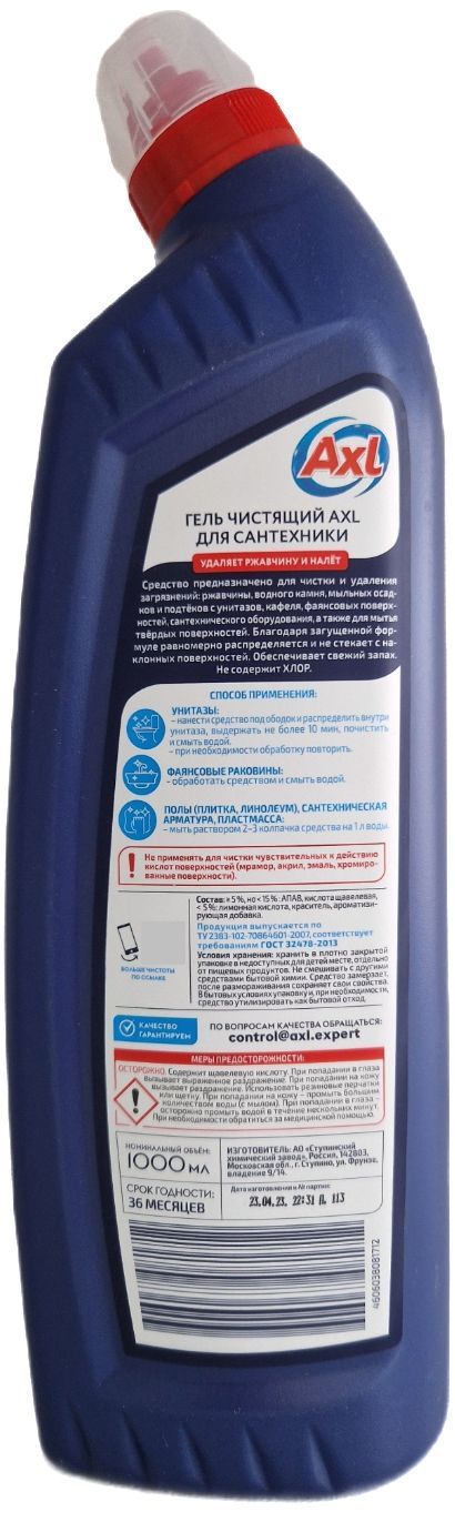 Гель чистящий для сантехники, антиналёт, AXL, 1 л.