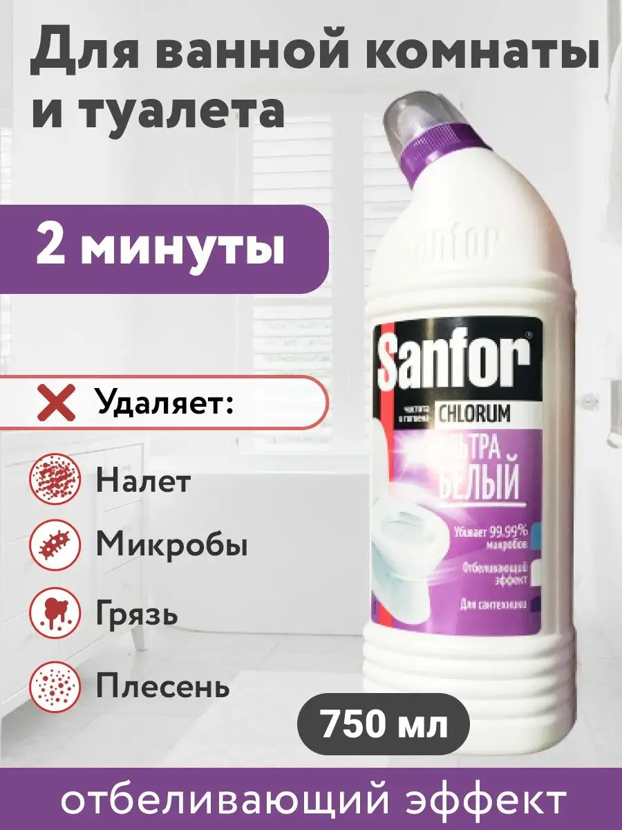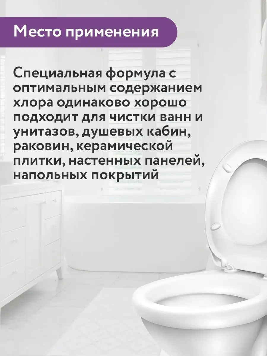 Описание: Специальная формула с содержанием хлора одинаково хорошо подходит для чистки ванн и унитазов. Эффективно удаляет серый налет, въевшуюся грязь, мыльные потеки. Мгновенно, без длительных выдерживаний, возвращает поверхностям первоначальную белизну. В наличии: 1 бутылка 750 мл, 2 бутылки по 750мл.