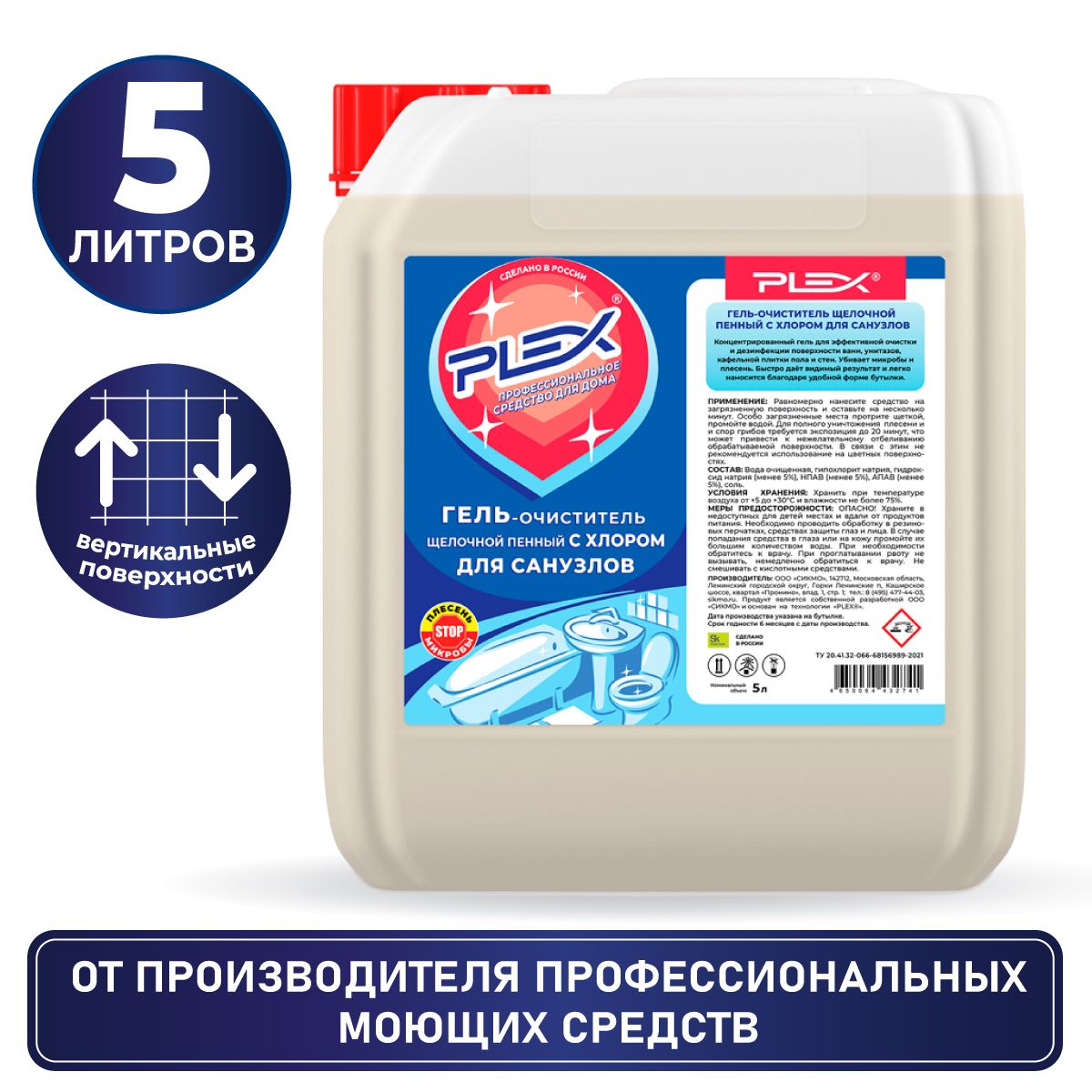 Гель для чистки и дезинфекции сантехники 5л PLEX