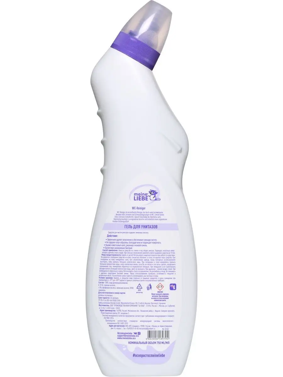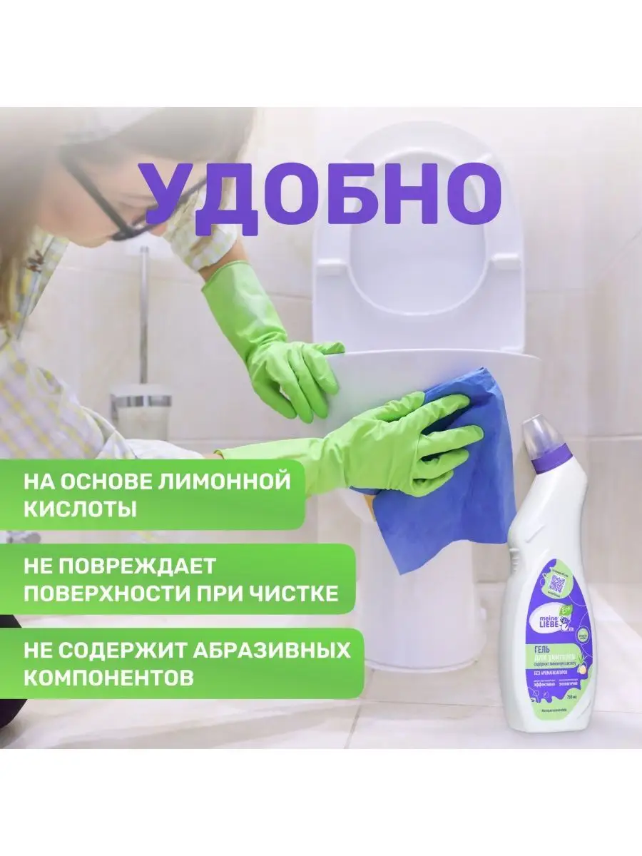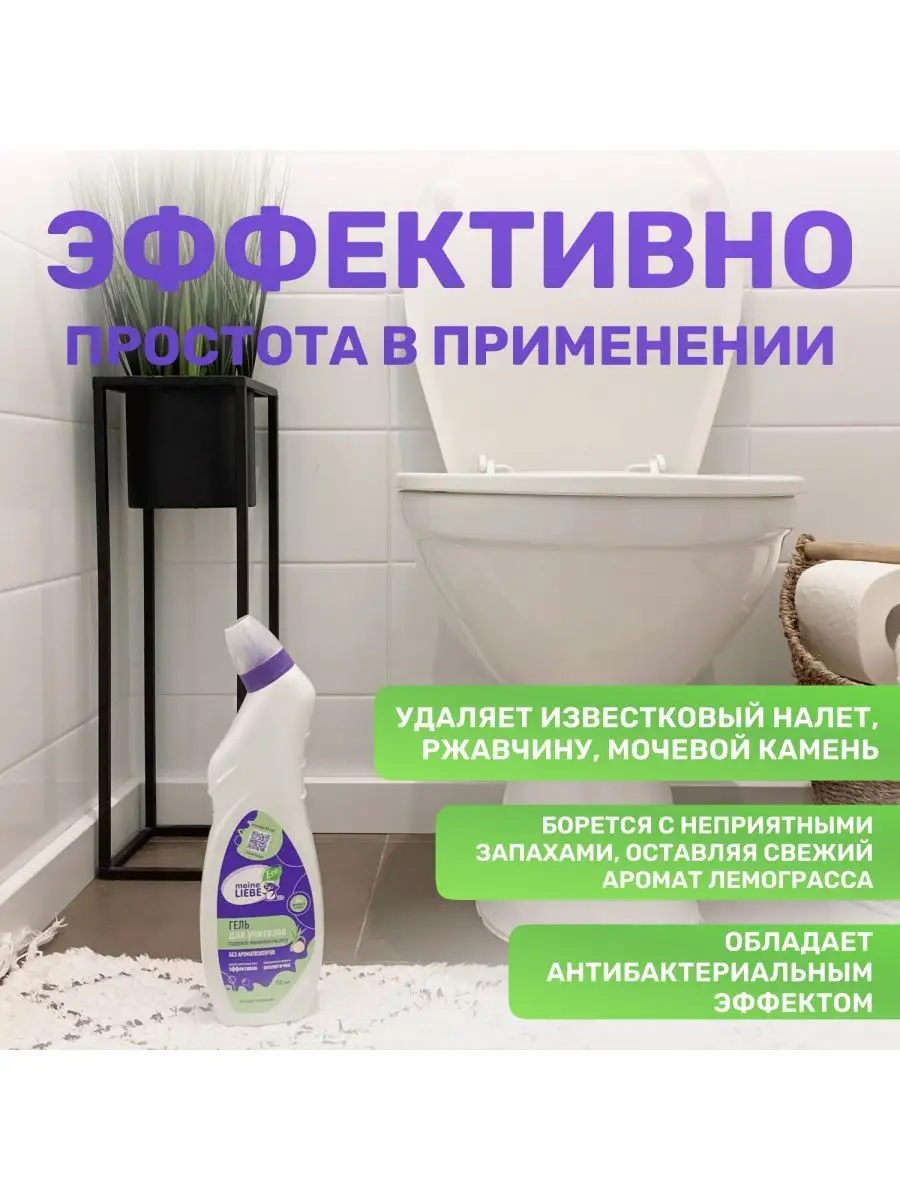 Описание: Гель для унитазов Средство для чистки унитазов на основе лимонной кислоты. Действие: - Эффективно удаляет загрязнения и обеспечивает сияющую чистоту. - Борется с неприятными запахами, оставляя свежий аромат лемонграсса. - Не содержит хлор и абразивы, благодаря чему не повреждает поверхность. - Удаляет известковый налет, ржавчину и мочевой камень. - Препятствует размножению бактерий. НЕ подходит для септиков