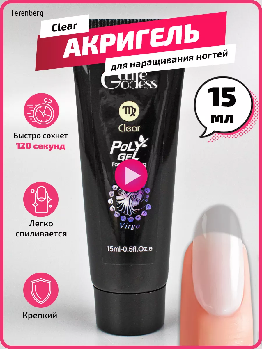 Комплектация Акригель 15 мл.; 1 акрил-гель для наращивания ногтей; полигель для наращивания и укрепления ногтей
