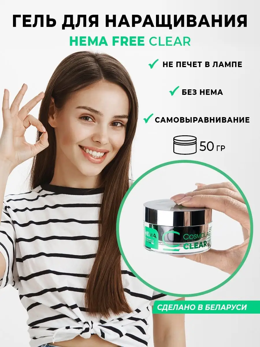 Гель для наращивания ногтей прозрачный HEMA FREE Clear