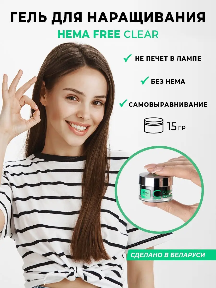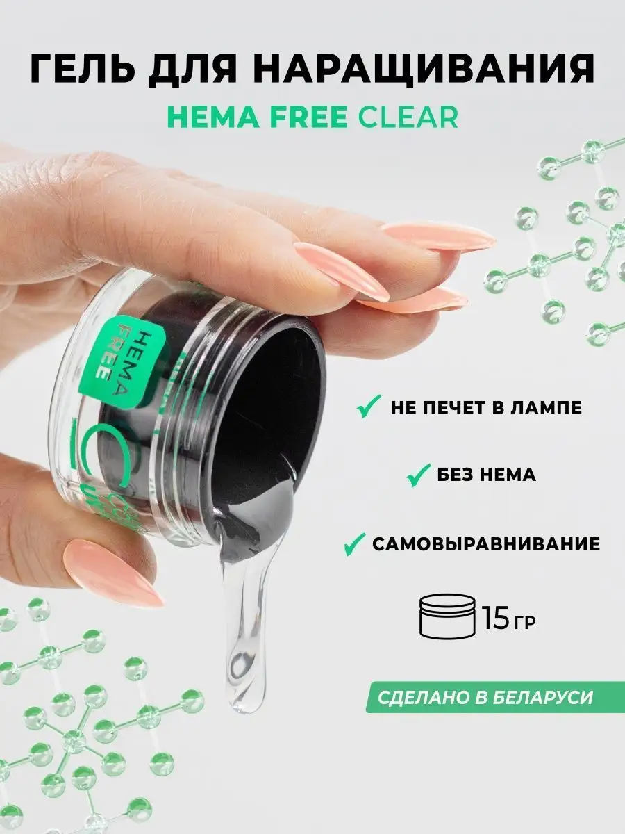 Гель для наращивания ногтей прозрачный HEMA FREE Clear 15 г