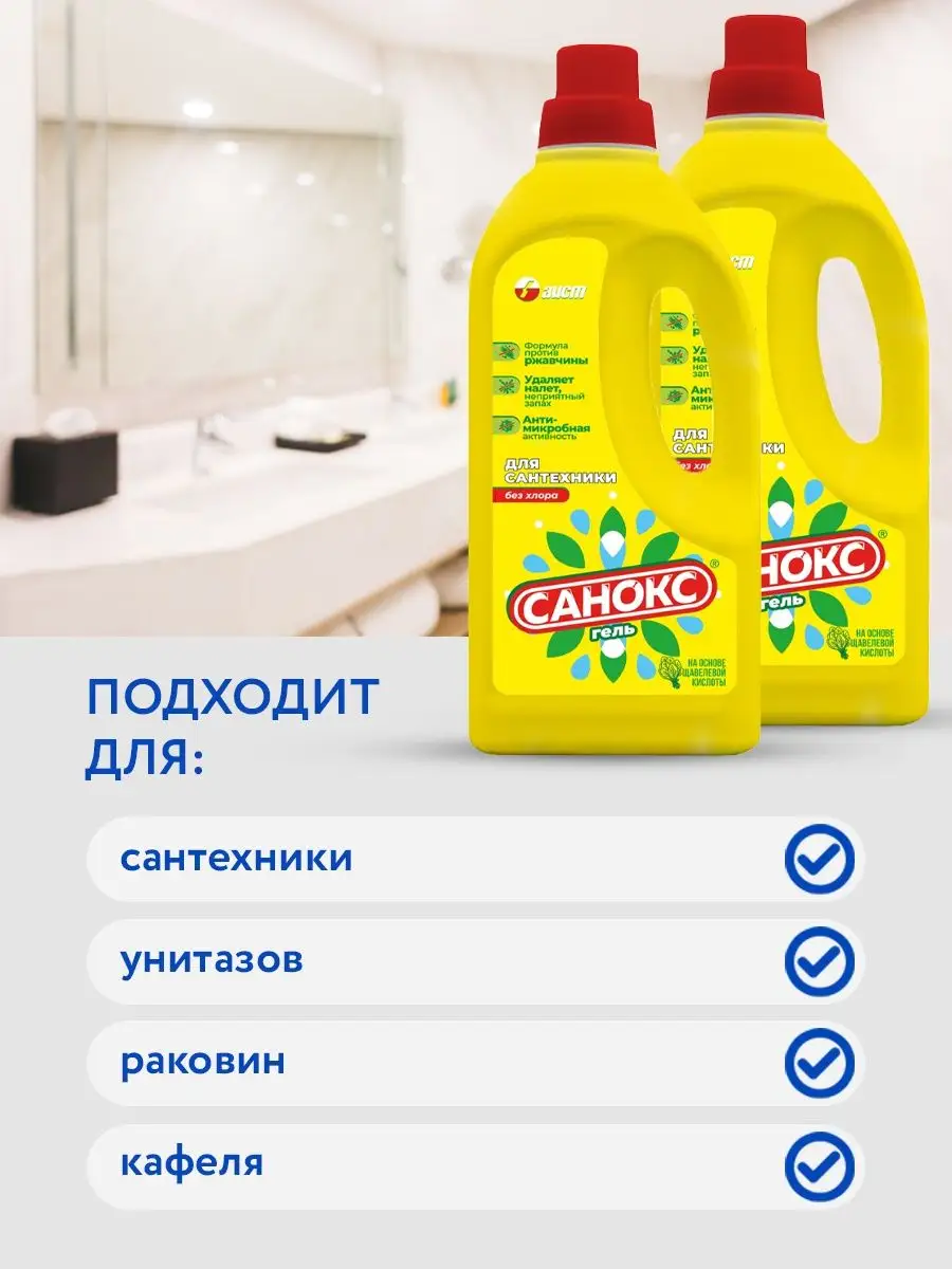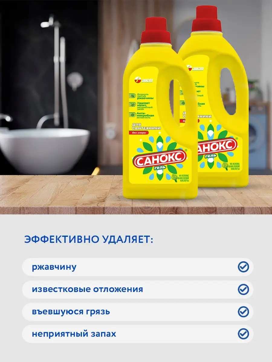 Описание: Профессиональная бытовая химия от российского производителя, чистящее средство Санокс-гель 1100 г для сантехнических изделий. Жидкое чистящее средство на основе щавелевой кислоты. Обладает высокоэффективным чистящим и дезинфицирующим свойством. Удаляет неприятные запахи и возбудителей кишечных инфекций. Улучшенная гелеобразная формула с активатором чистки POLIGEL и лимонной кислотой усиливает действие против ржавчины и солей жесткости. Экономичен в использовании. Уничтожает возбудителей стафилококка и кишечных инфекций. Предназначен для чистки раковин, унитазов, кафеля и другого сантехнического оборудования от ржавчины, известковых отложений, жировых и прочих загрязнений. Чистящее средство для сантехники придаст чистоту и блеск, а также устранит налет, источники неприятного запаха и не оставит после себя никаких следов. Подарит приятный аромат и свежесть. Чистящее средство уничтожает возбудителей стафилококка и кишечных инфекций. убивает вирусы, а также дезинфицирует от микробов и бактерий. Моющее средство станет отличным помощников для уборки в доме, удаляет в плохо доступных местах, не оставляет разводов под ободком унитаза или на сливе раковины, без труда чистит поверхности от известкового налета, солевых отложений и жира, как жироудалитель. Не использовать для чистки чувствительных к действию кислот или поврежденных поверхностей. Перед применением попробуйте на небольшом участке.