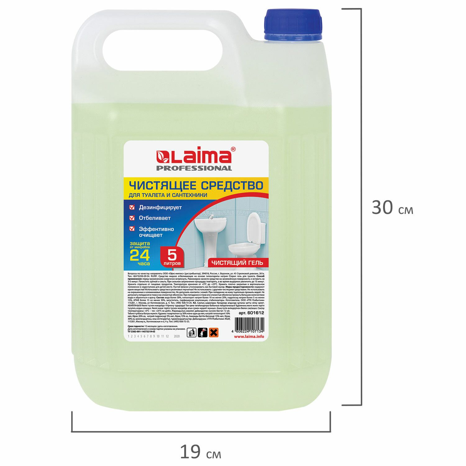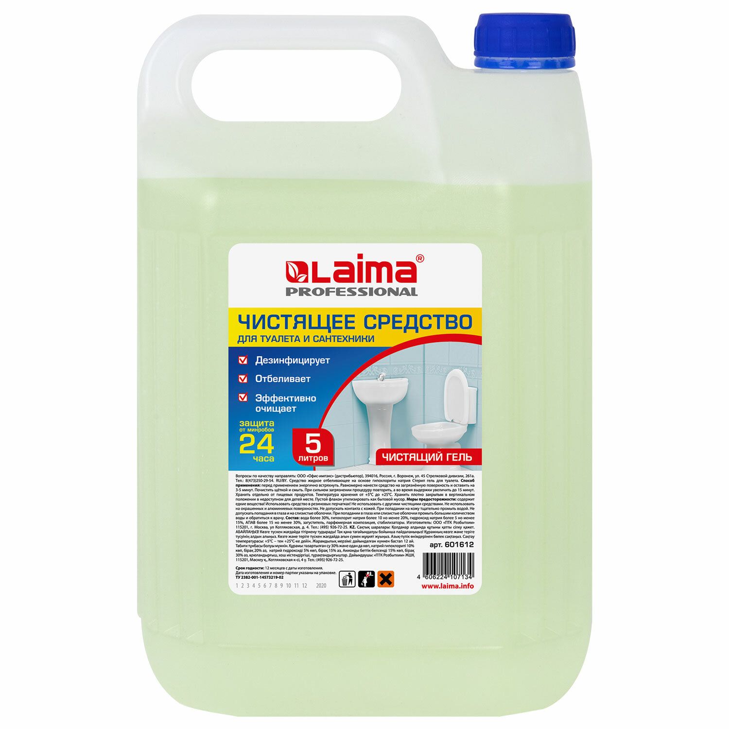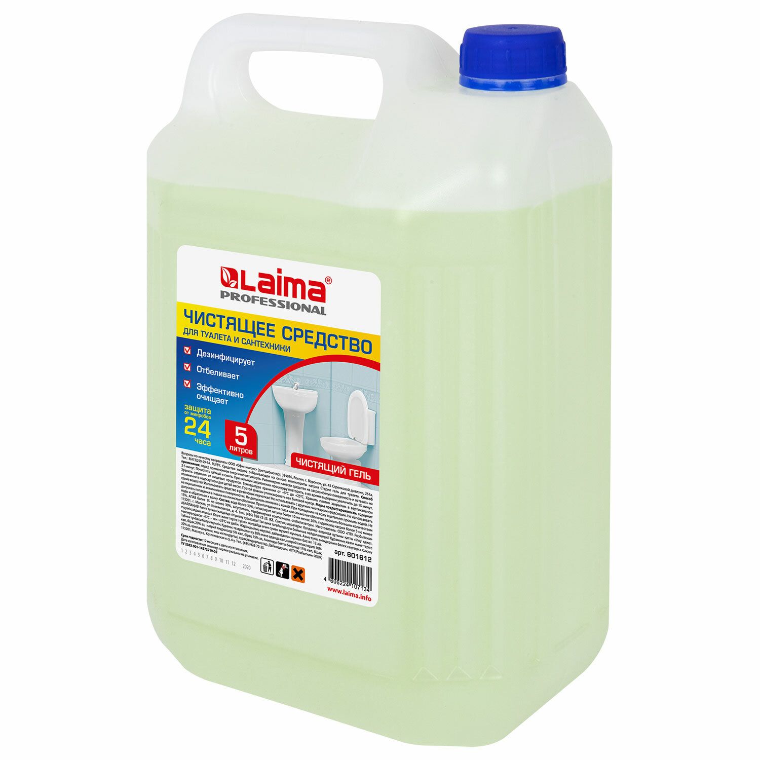 Гель для уборки туалета чистящий, моющий 5 литров, Лайма Professional, с отбеливающим эффектом