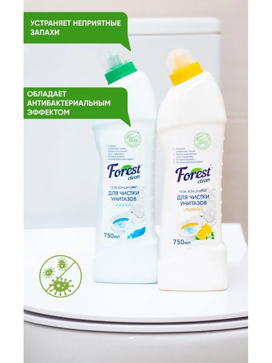 Описание: Forest Clean Гель для чистки унитаза 750 мл. Антибактериальное Концентрированное Гипоаллергенное Биоразлагаемое – кислотное моющее средство для чистки унитазов, кафеля и керамики от известкового налета, от ржавчины, солевых отложений на основе высококачественных компонентов. Предназначено для ежедневной уборки всех видов поверхностей в ванных комнатах и санузлах : унитаза, раковины, ванны, душевой кабины, керамической плитки, акриловых, фаянсовых и эмалированных поверхностей от любых видов загрязнений. Чистящее средство убивает микробы, бактерии. Эффективно удаляет известковый налёт, ржавчину. Освежает воздух гипоаллергенным ароматом на основе натуральных масел, устраняет запахи и справляется с любыми видами загрязнений. Чистящее средство для сантехники полностью смывается и работает даже в холодной воде. Гель для чистки унитаза имеет экологичный, биоразлагаемый, высокоэффективный состав. Средство биоразлагаемо, а значит не вредит микрофлоре и безопасен в условиях естественной среды для человека, природы и животных. Биоразлагаемые ПАВ не накапливаются в экосистеме, окисляясь в безвредные вещества под воздействием воды, солнца и воздуха. Гель обладает антибактериальным эффектом и содержит вещества природного и синтетичеcкого происхождения, которое вызывает гибель бактерий и задерживает их рост. Средство имеет экономичный расход за счет своей концентрированной формулы и высокой концентрацией действующих веществ. Растереть губкой или щёткой и смыть водой. При необходимости повторить обработку. Теги - Forest clean, чистящие средства для унитаза, средства для унитаза, гель для уборки, жидкость для уборки, гель для унитаза, гель для сантехники, гель для чистки унитаза, средство для сантехники, хозяйственные товары, чистящее средство, моющее средство, гель для уборки, жидкость для уборки, товары для дома, все для дома, чистящее средство для ванны, средство для ванны, средство для туалета, чистящее средство ванная и туалет, средство для чистки ванны.